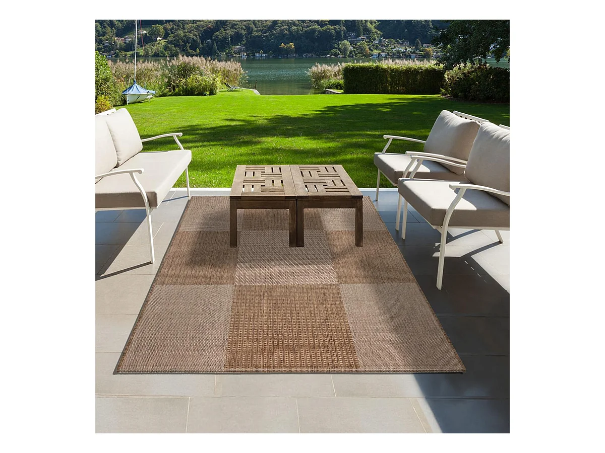 Tapis extérieur 160x230 tissé kilim marron et crème CASADA 5