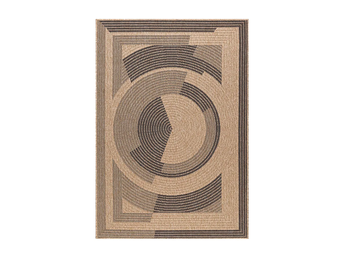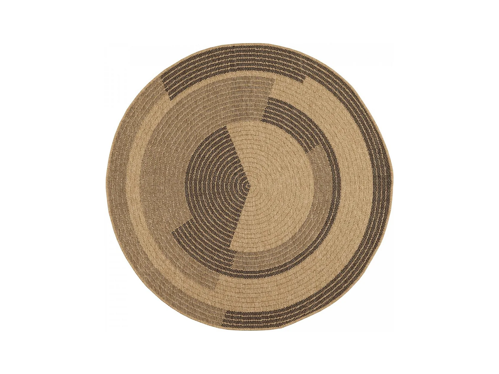 Tapis extérieur Ø80cm rond tissé kilim beige et noir JUTE ART 7