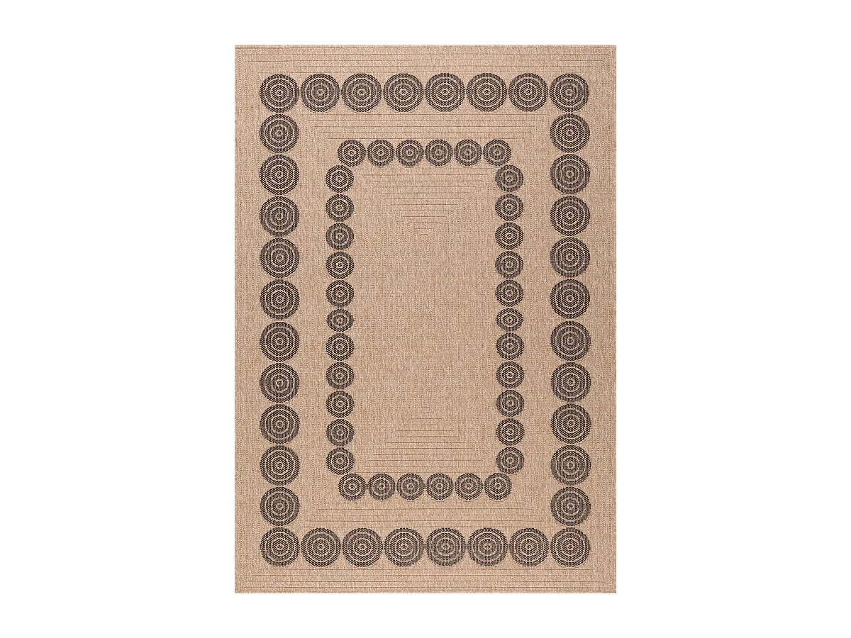 Tapis extérieur Ø80cm rond tissé kilim beige et noir JUTE ART 8