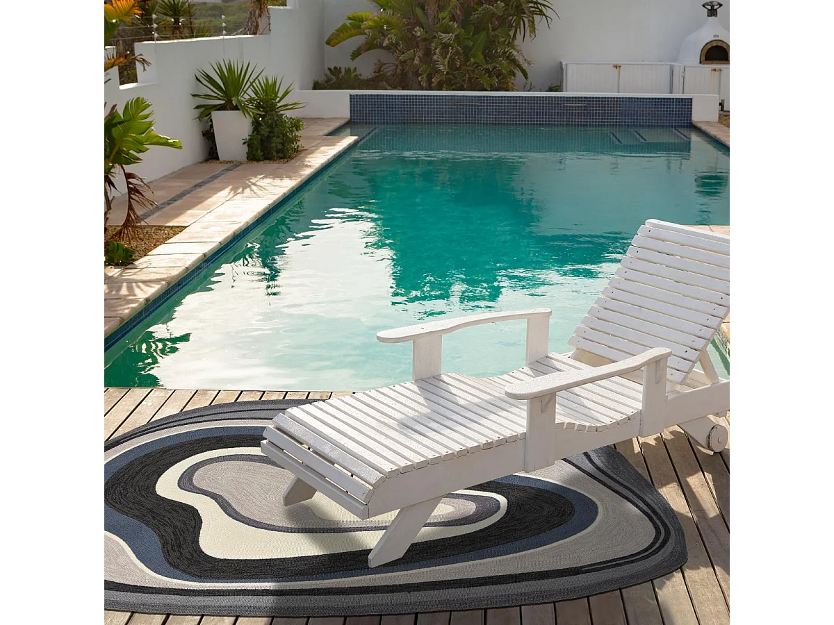 Tapis extérieur 140x200 tissé kilim noir et bleu AURA