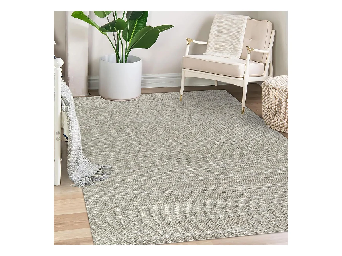 Tapis extérieur 123x180 tissé kilim gris et beige BACAO