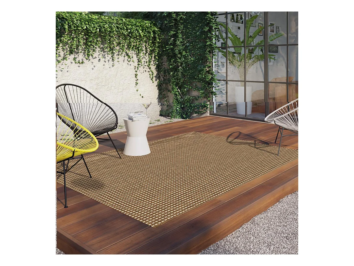 Tapis extérieur, kilim reversible 120x170 LYN2 AC REVERSIBLE marron et blanc