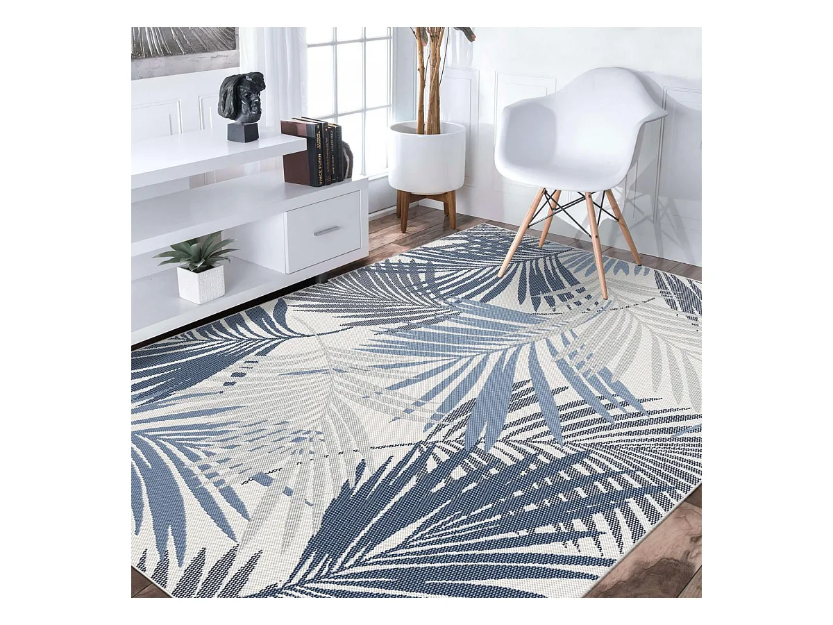Tapis extérieur 80x150 tissé kilim gris et bleu CASADA 15