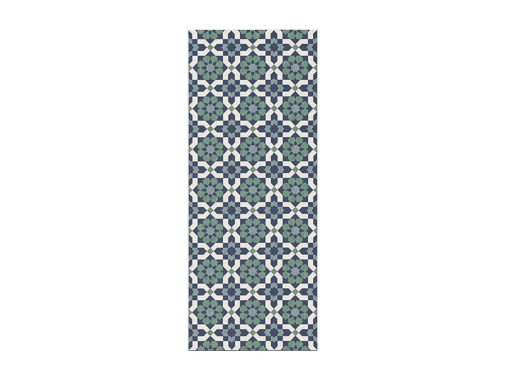 Tapis extérieur 80x200 tissé kilim vert et bleu CASADA 14