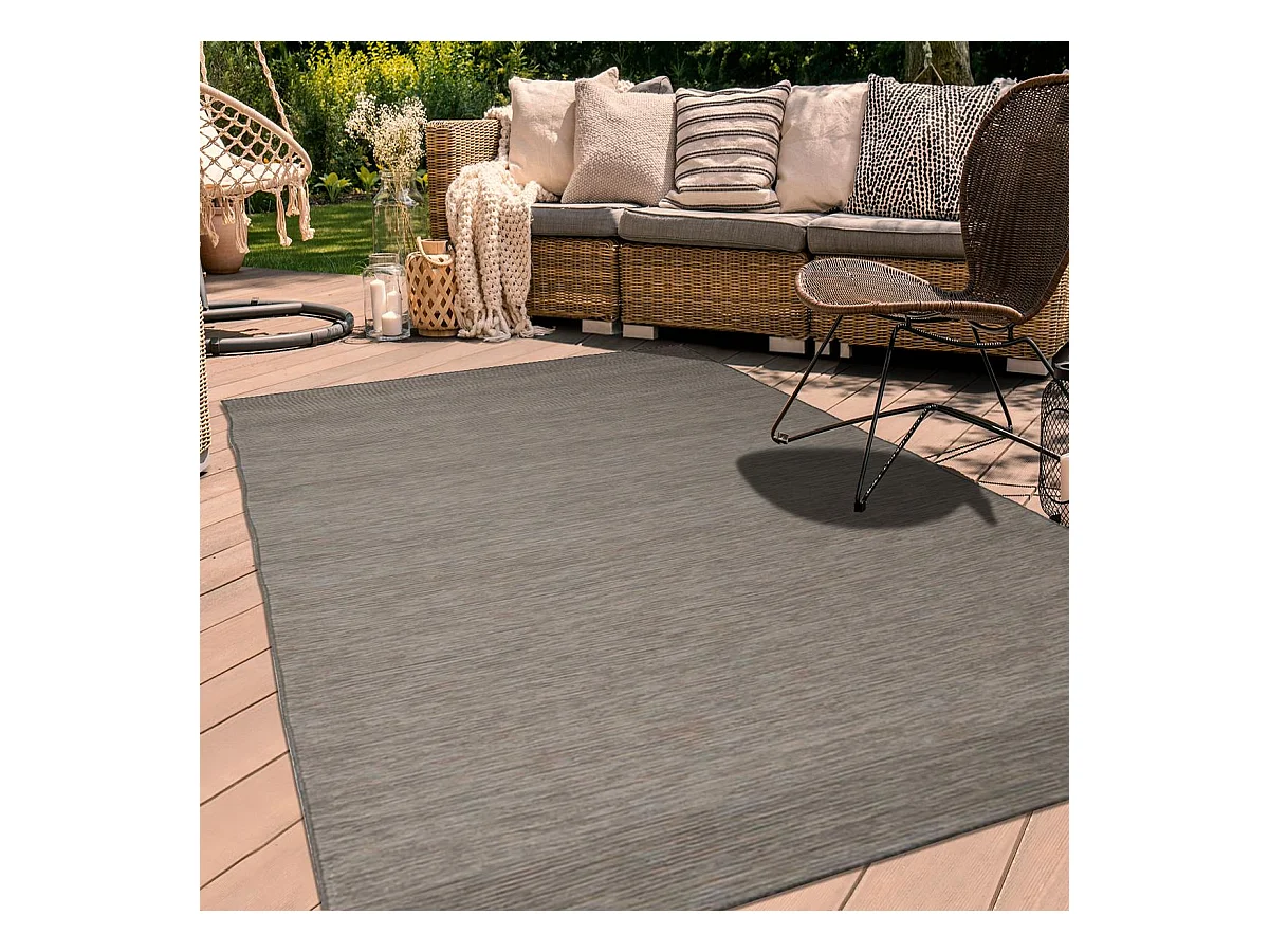 Tapis extérieur, kilim reversible 120x170 LYN2 AC REVERSIBLE marron et blanc