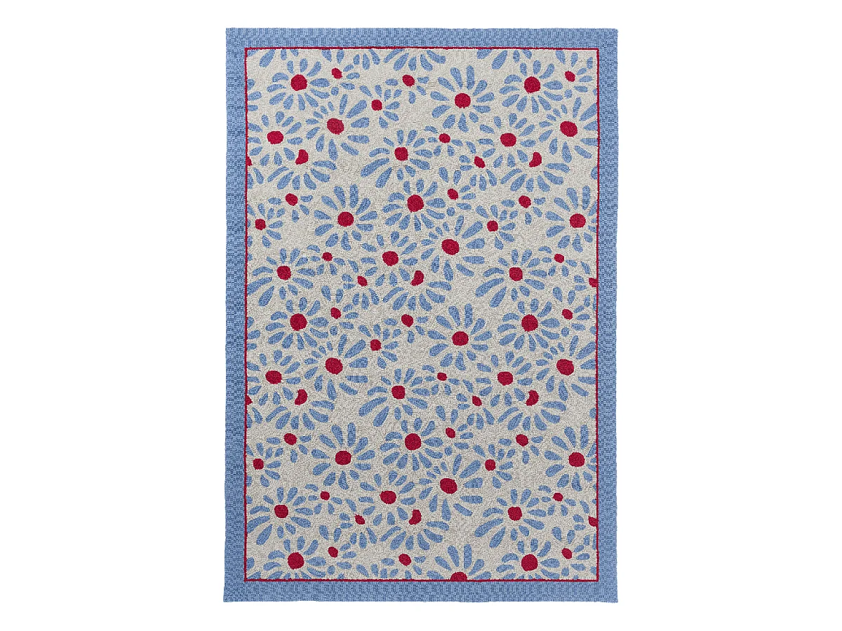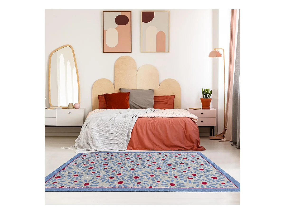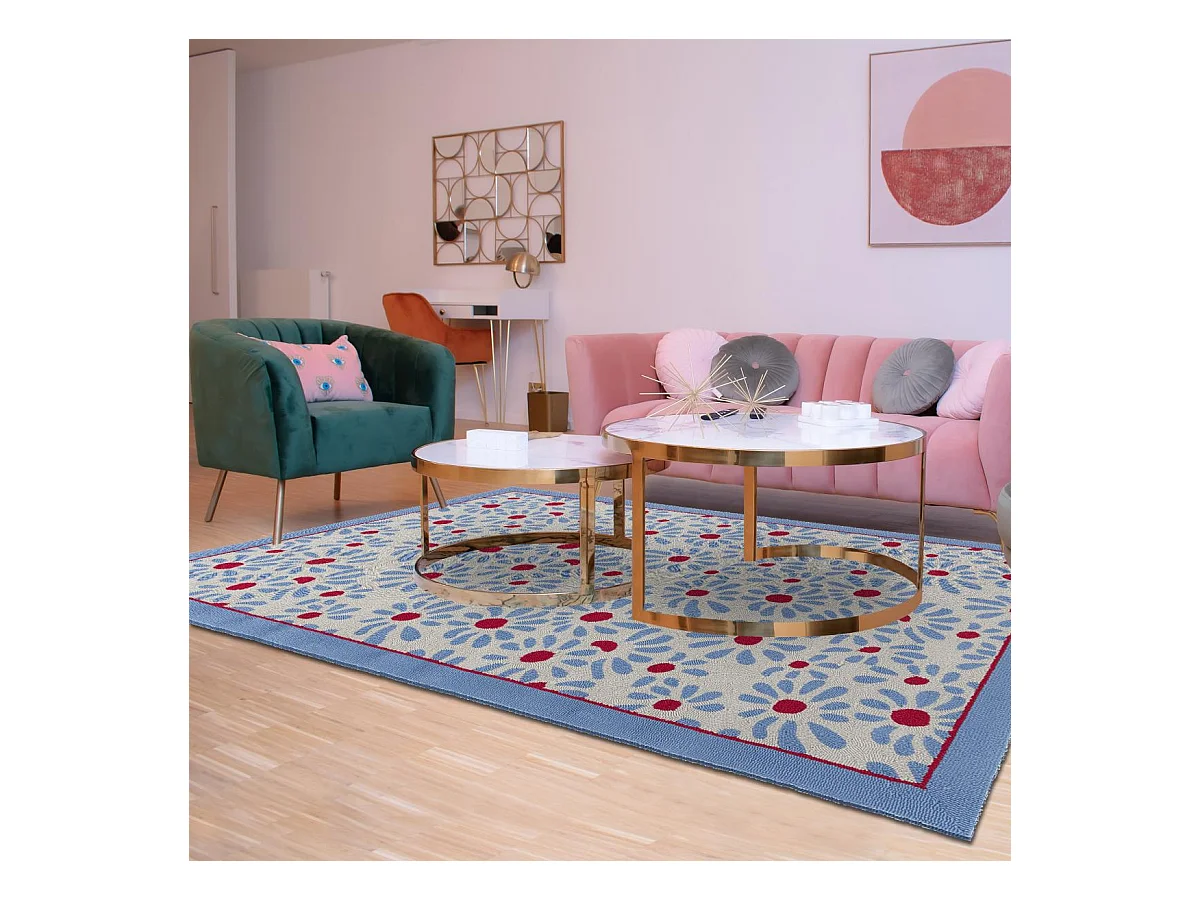 Tapis extérieur 140x200 kilim fait main bleu et rouge DAISY