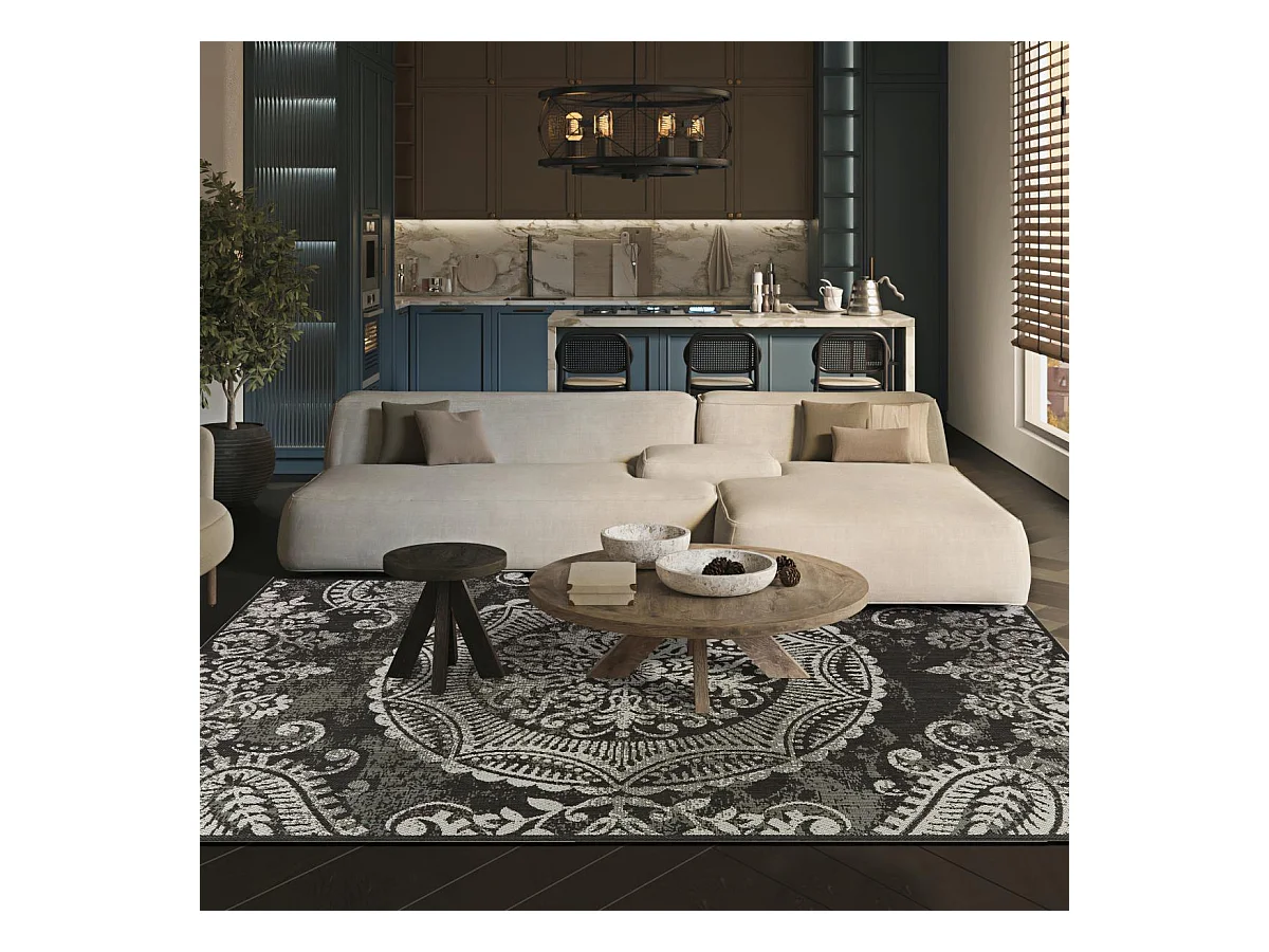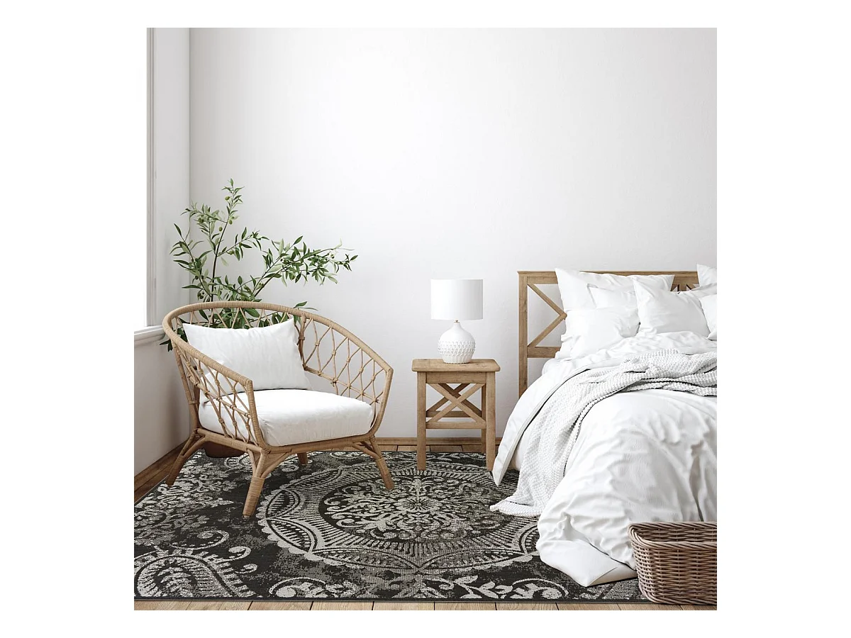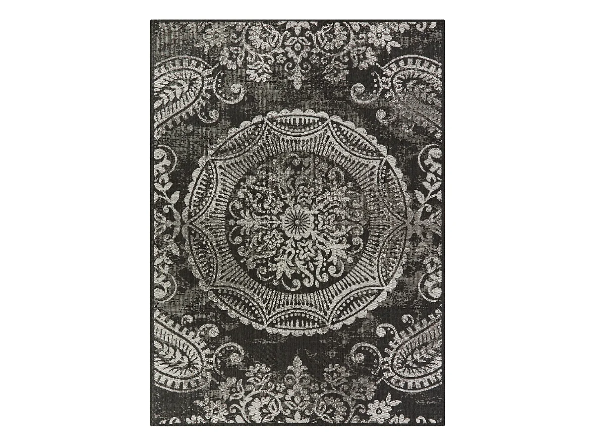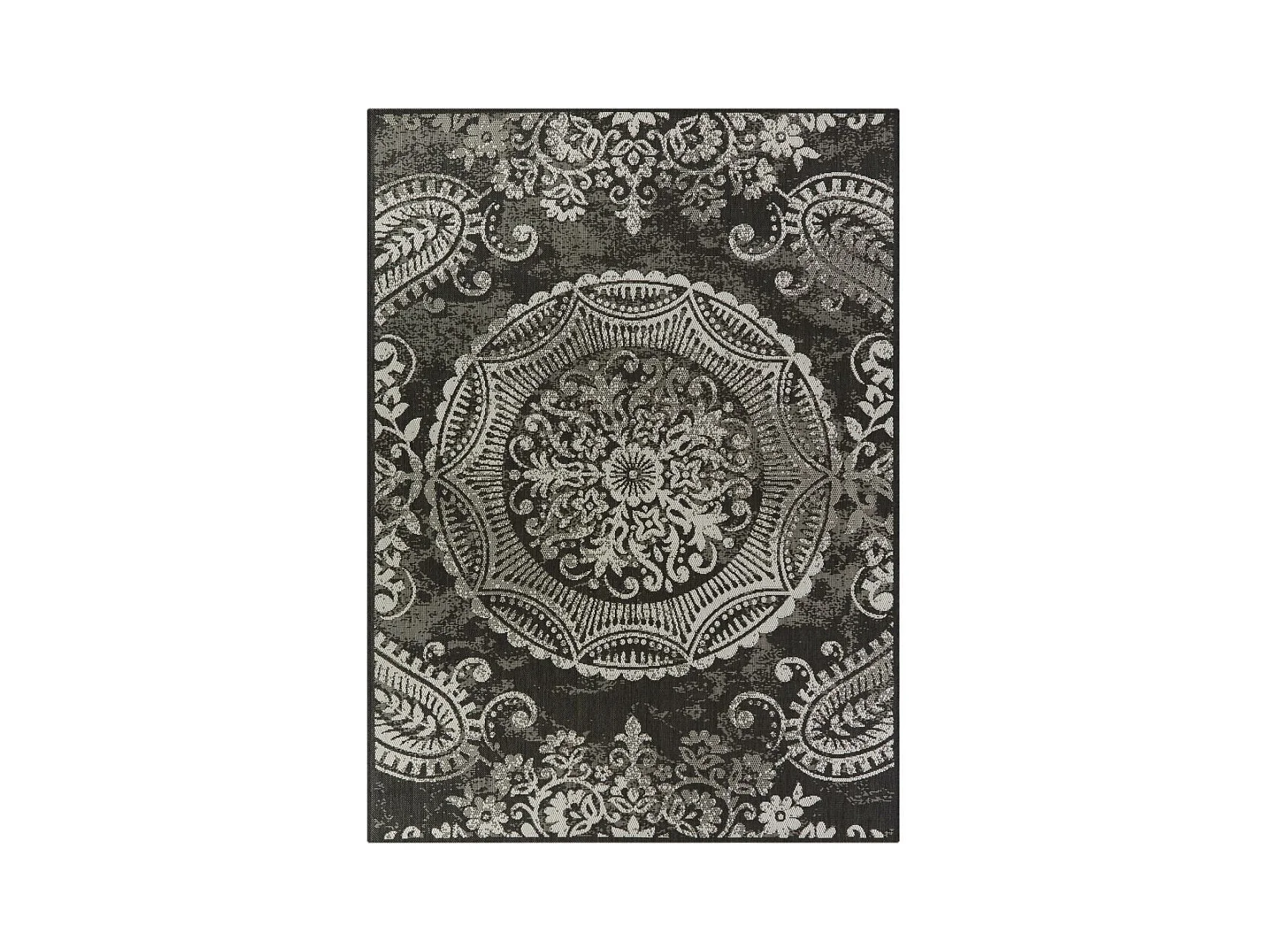 Tapis extérieur 160x225 tissé kilim noir et gris IRISA 1