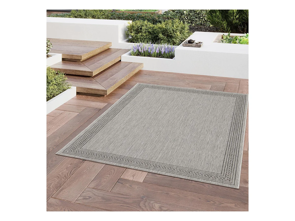 Tapis extérieur 160x225 tissé kilim gris BOTANI 3