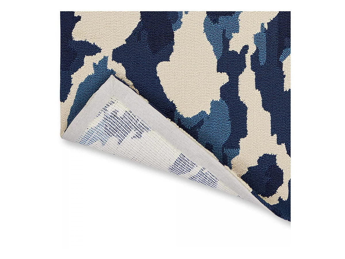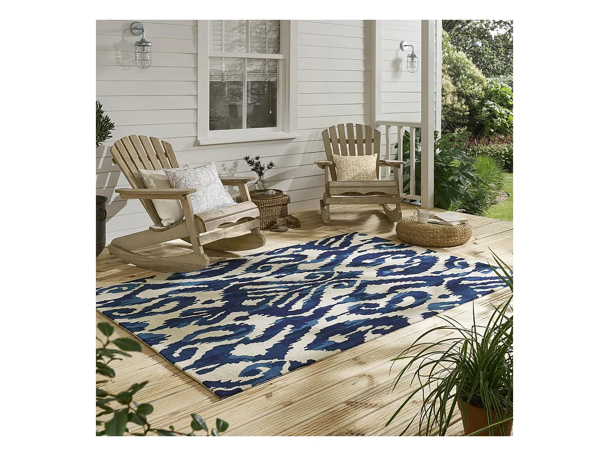 Tapis extérieur 200x280 tissé kilim bleu et beige KASURI