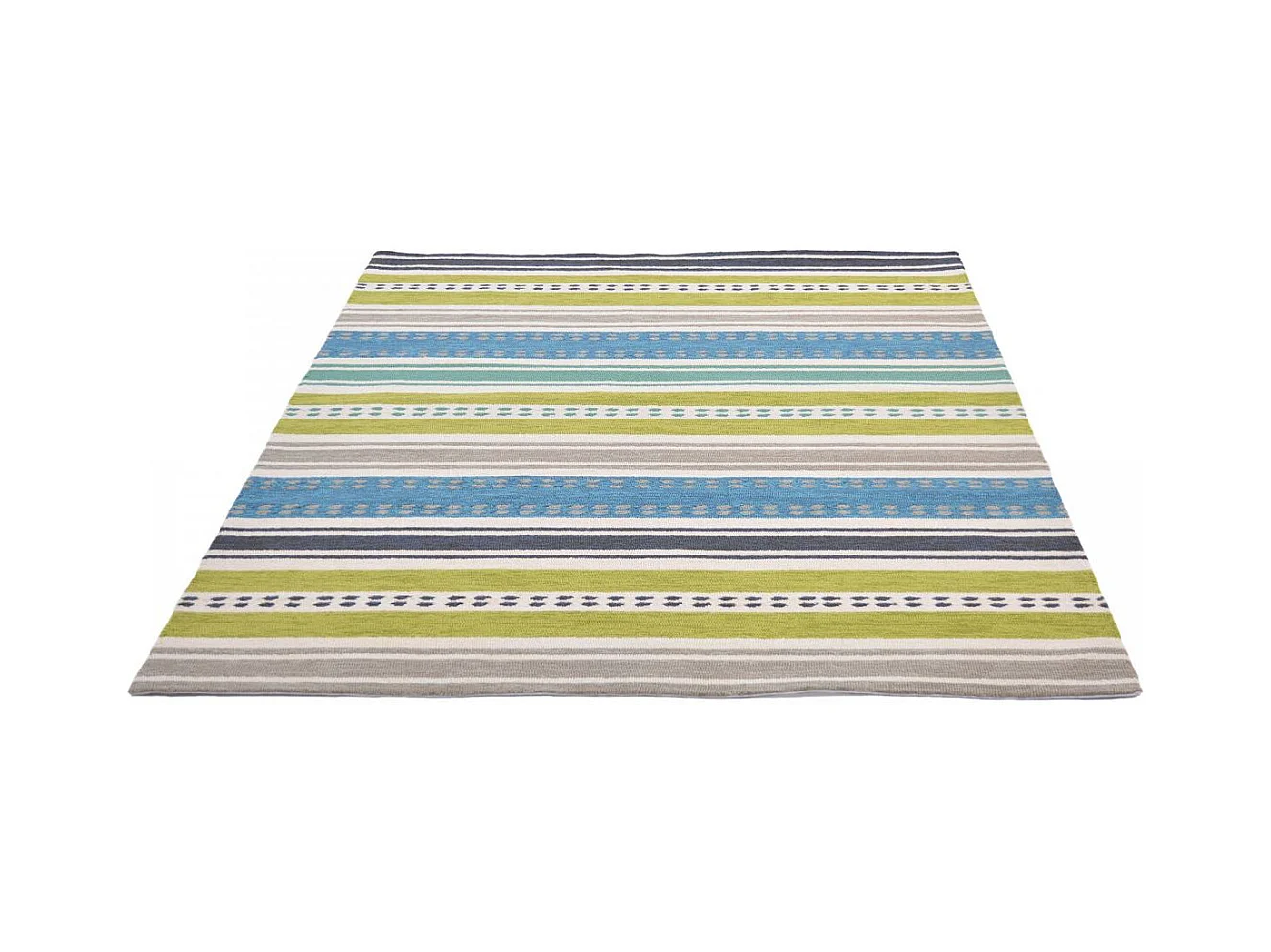 Tapis extérieur 140x200 tissé kilim vert et bleu RIVI