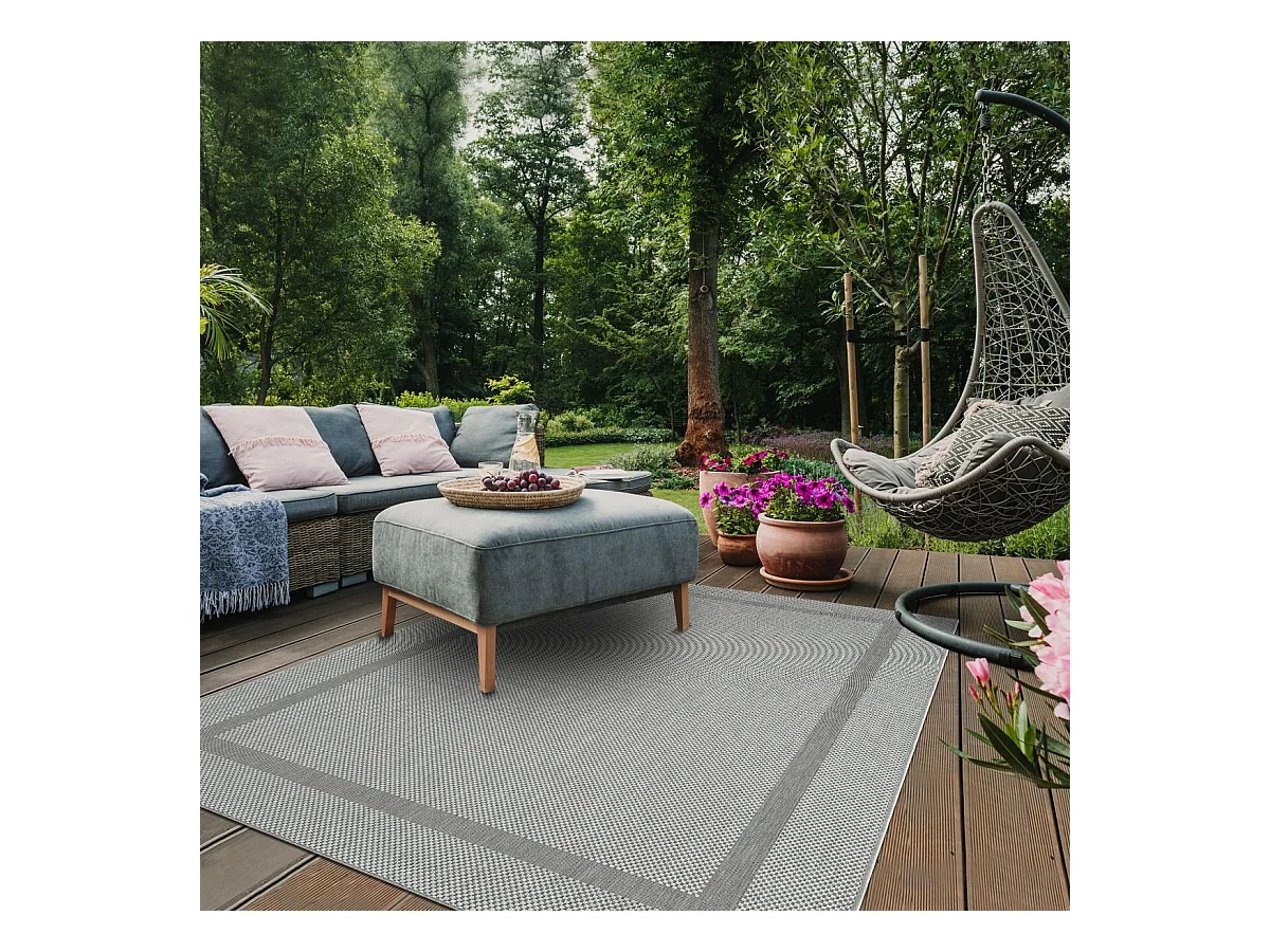 Tapis extérieur 160x230 tissé kilim gris LYN45 SUNSAU 7