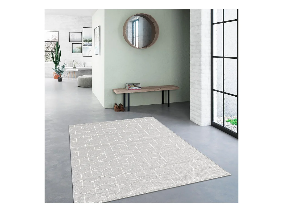 Tapis extérieur 200x290 tissé kilim gris et crème STALOW 9