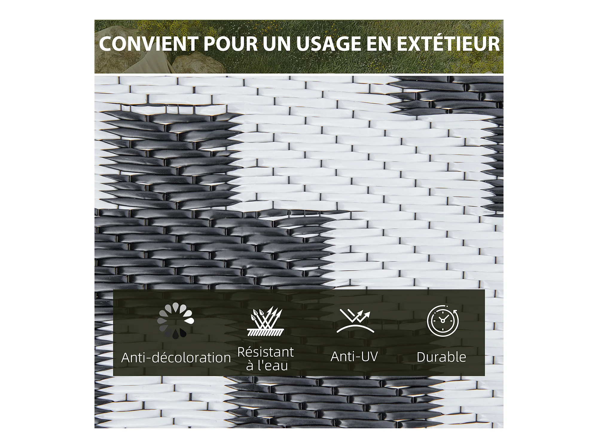 Tapis extérieur style graphique - tapis réversible 2 motifs - dim. 2,74L x 1,82l m, ép. 3 mm - PP haute densité 310 g/m² noir blanc