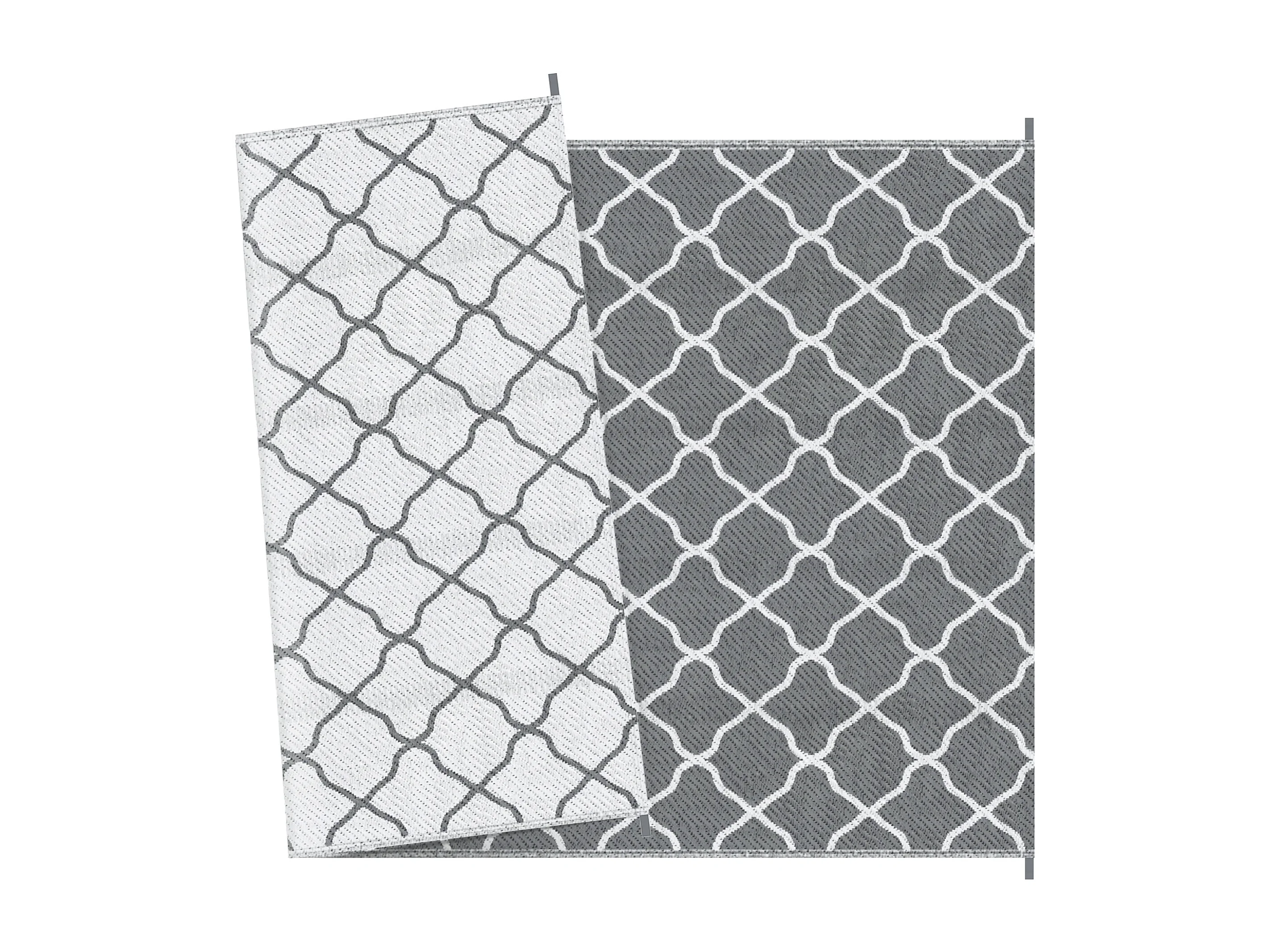 Tapis extérieur style graphique - tapis réversible bicolore - dim. 2,74L x 1,82l m, ép. 3 mm - PP haute densité 310 g/m² gris blanc