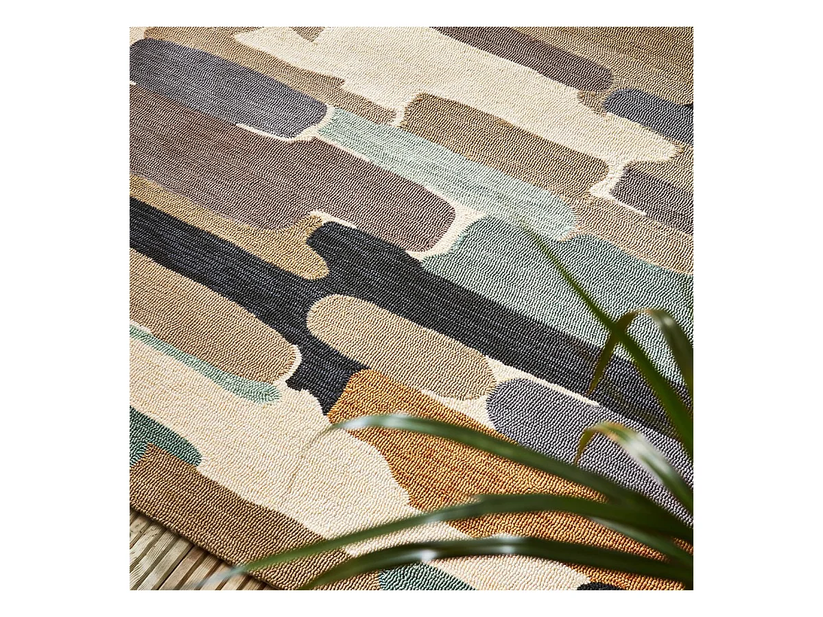 Tapis extérieur 140x200 tissé kilim bleu et beige TRATTINO