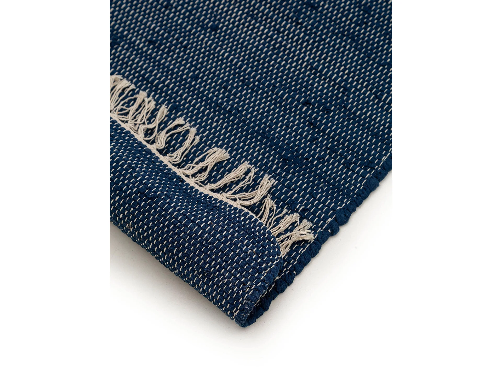 Tapis enfant 124x167 fait main en coton bleu et blanc DRAPA