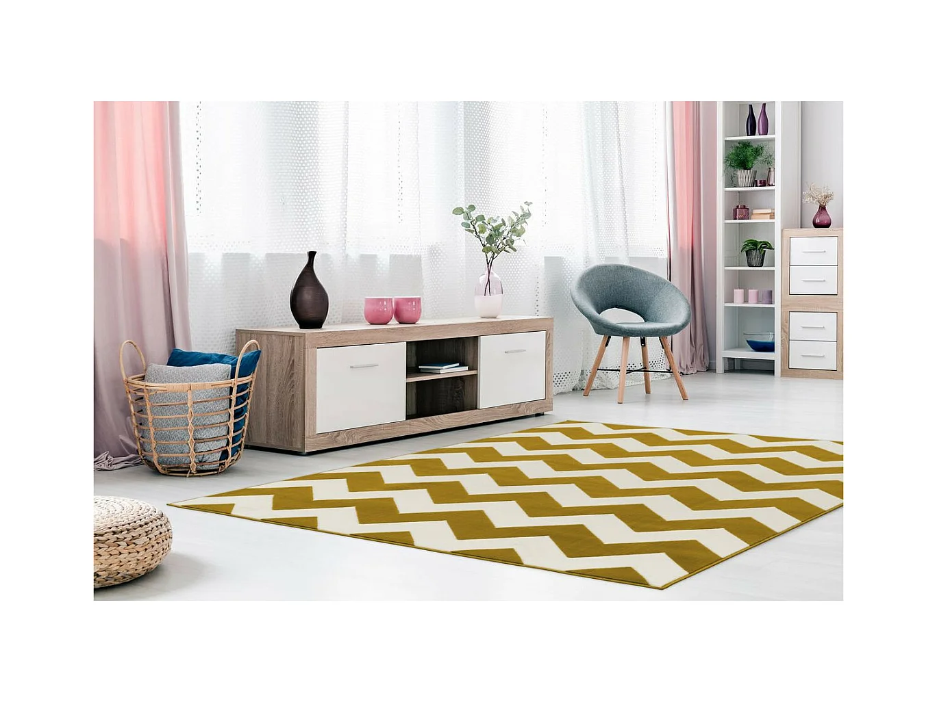 Tapis Géométrique à Poils Courts "Manolya" Or 160 x 230 cm