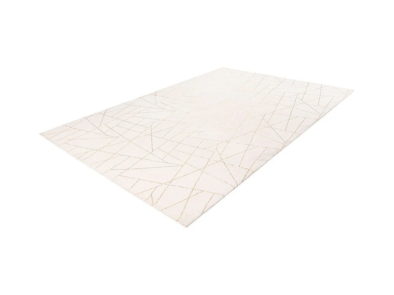 Tapis Géométrique à Poils Longs "Bijou" Blanc & Or 200 x 290 cm
