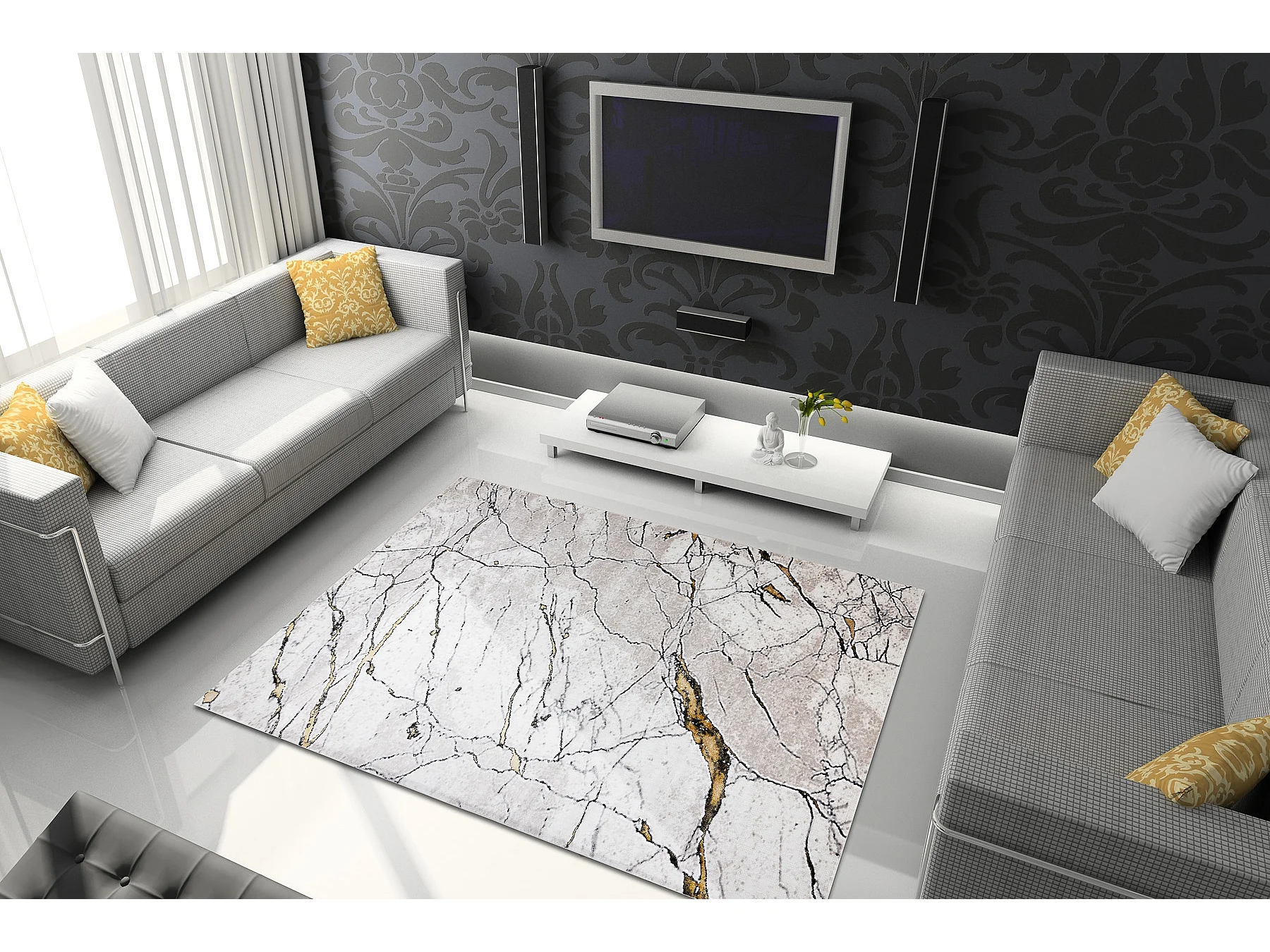 Tapis GLOSS moderne 529A 53 Marbre, calcul, élégant, glamour Ivoire 240x330 cm