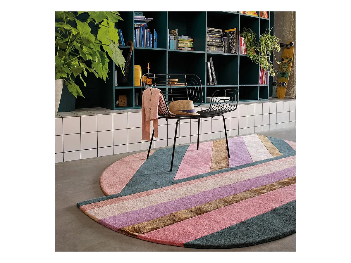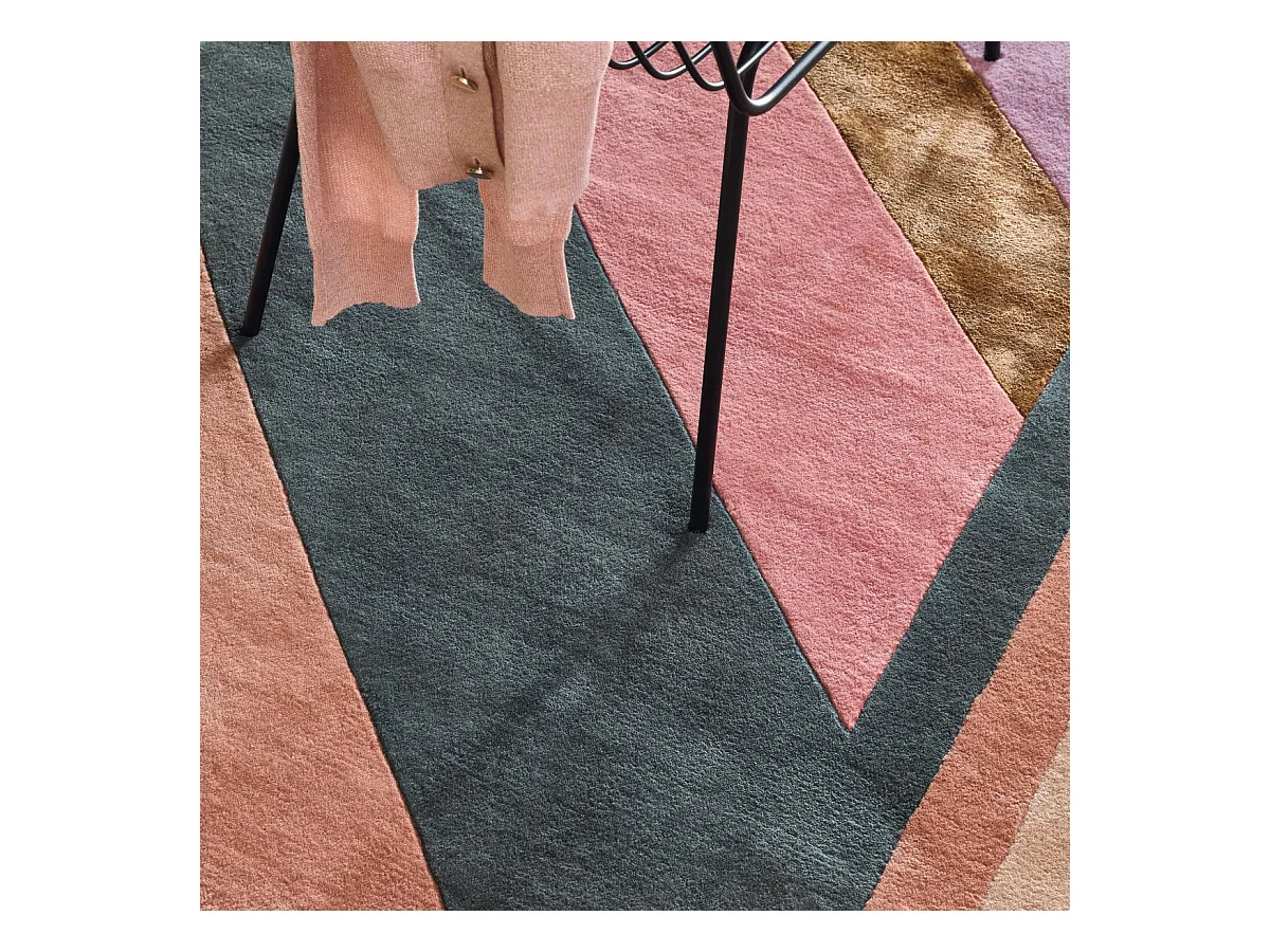 tapis grand salon 250x350 fait à la main en laine rose et vert