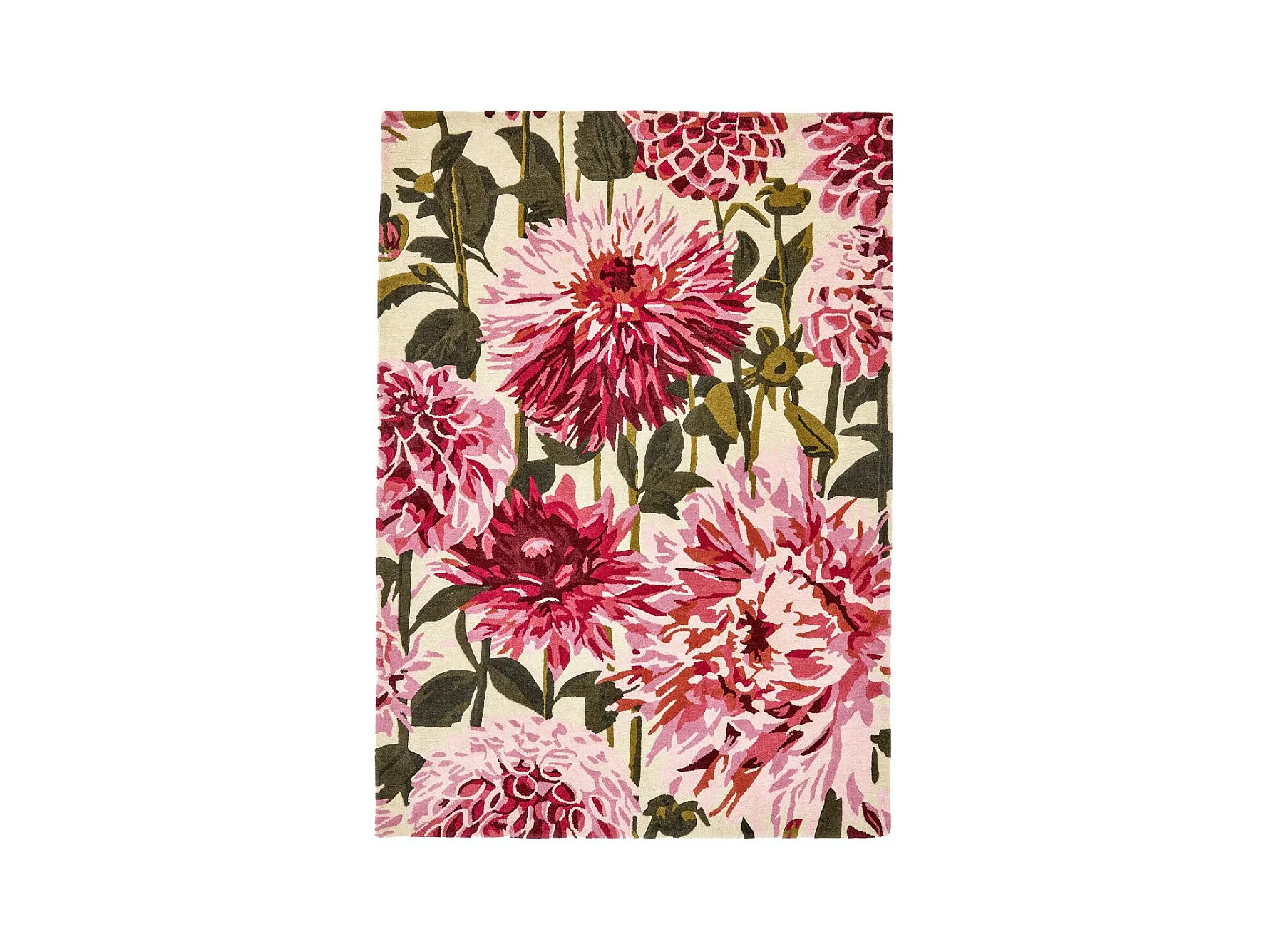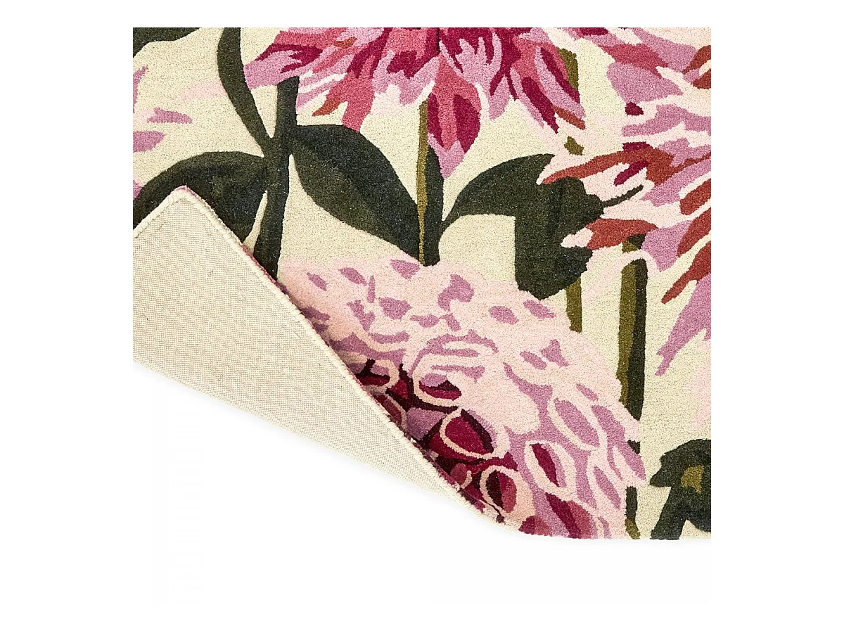 tapis grand salon 250x350 fait à la main en laine rose et vert motif floral