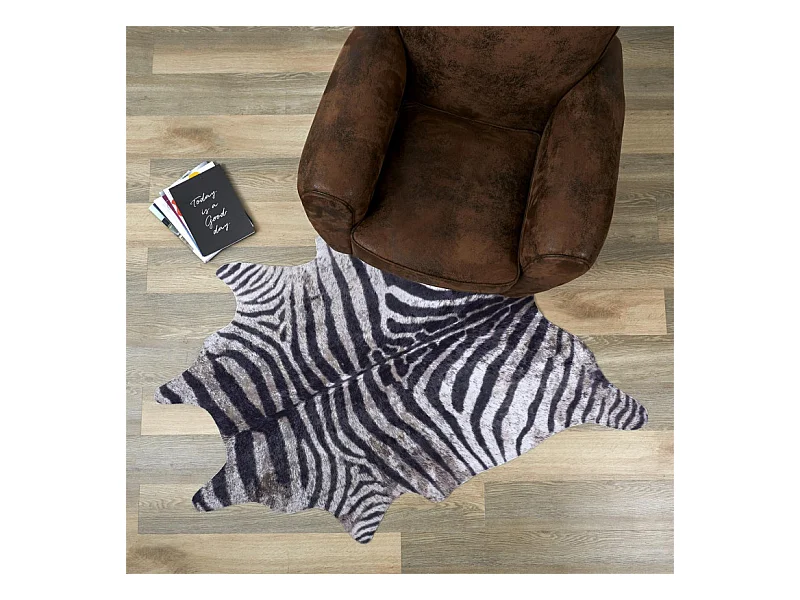 Tapis Imitation Peau De Zebre 120x158cm Blanc, Noir