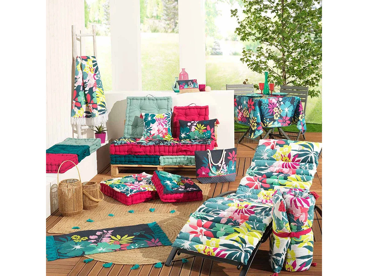 Tapis Imprimé à Franges "Hawaï" 50x80cm Bleu