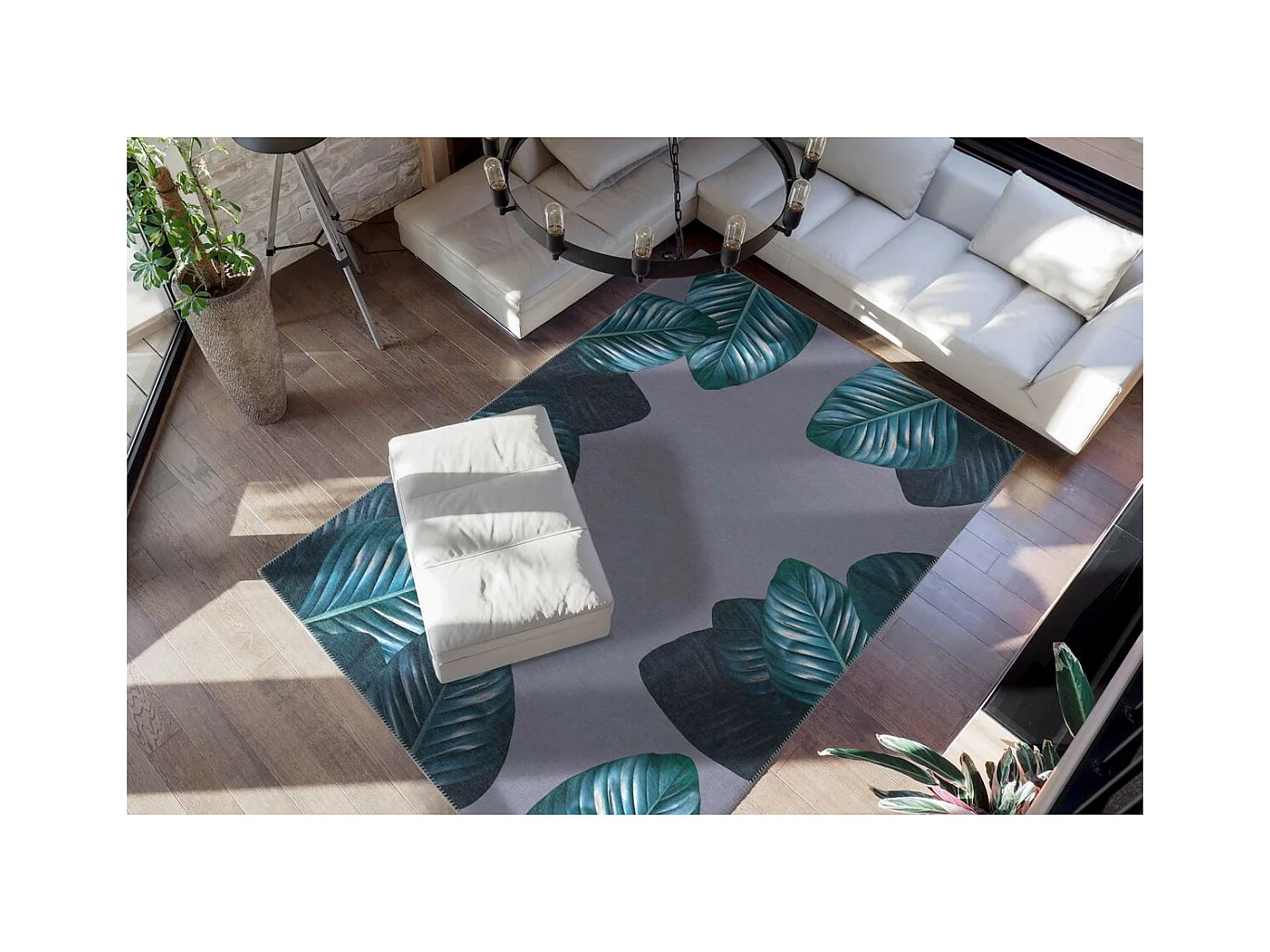 Tapis Imprimé à Poils Courts "Tropical" Noir & Vert 80 x 150 cm