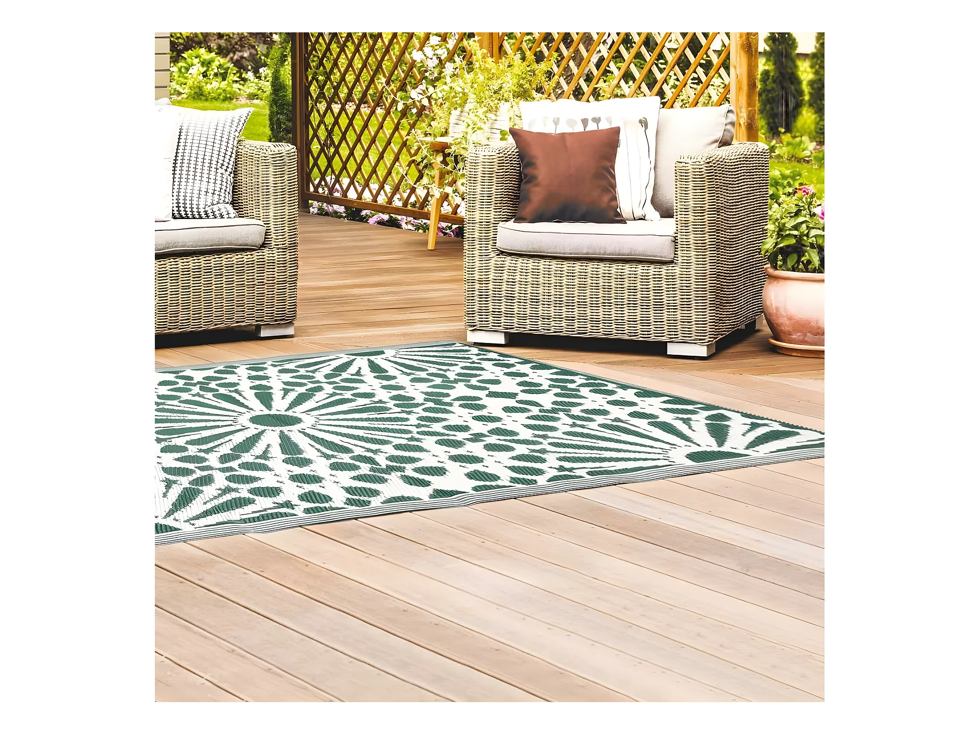 Tapis Déco Imprimé "Patio" 120x180cm Vert