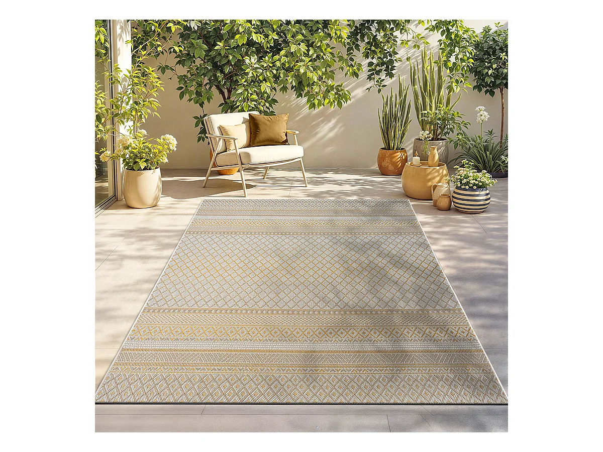 Tapis intérieur extérieur design moderne - Beige Jaune - 80 x 150 cm - CALGARY
