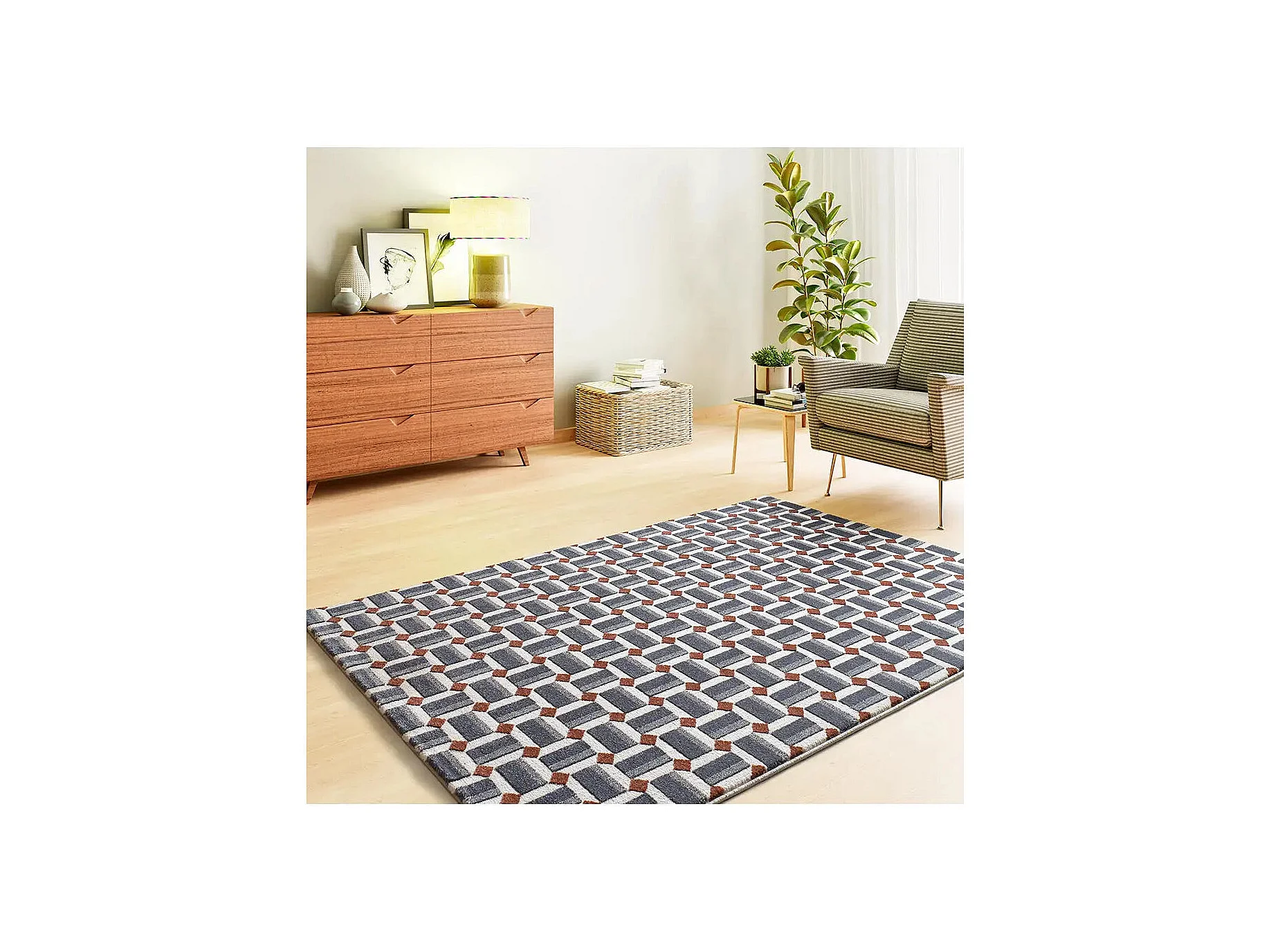 Tapis intérieur - géométrique avec relief - bleu / blanc - 133 x 190 cm - AMARA
