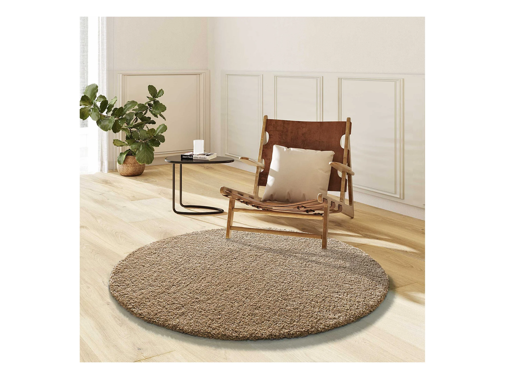 Tapis poils longs shaggy Ø160cm rond tissé marron motif uni UNI L