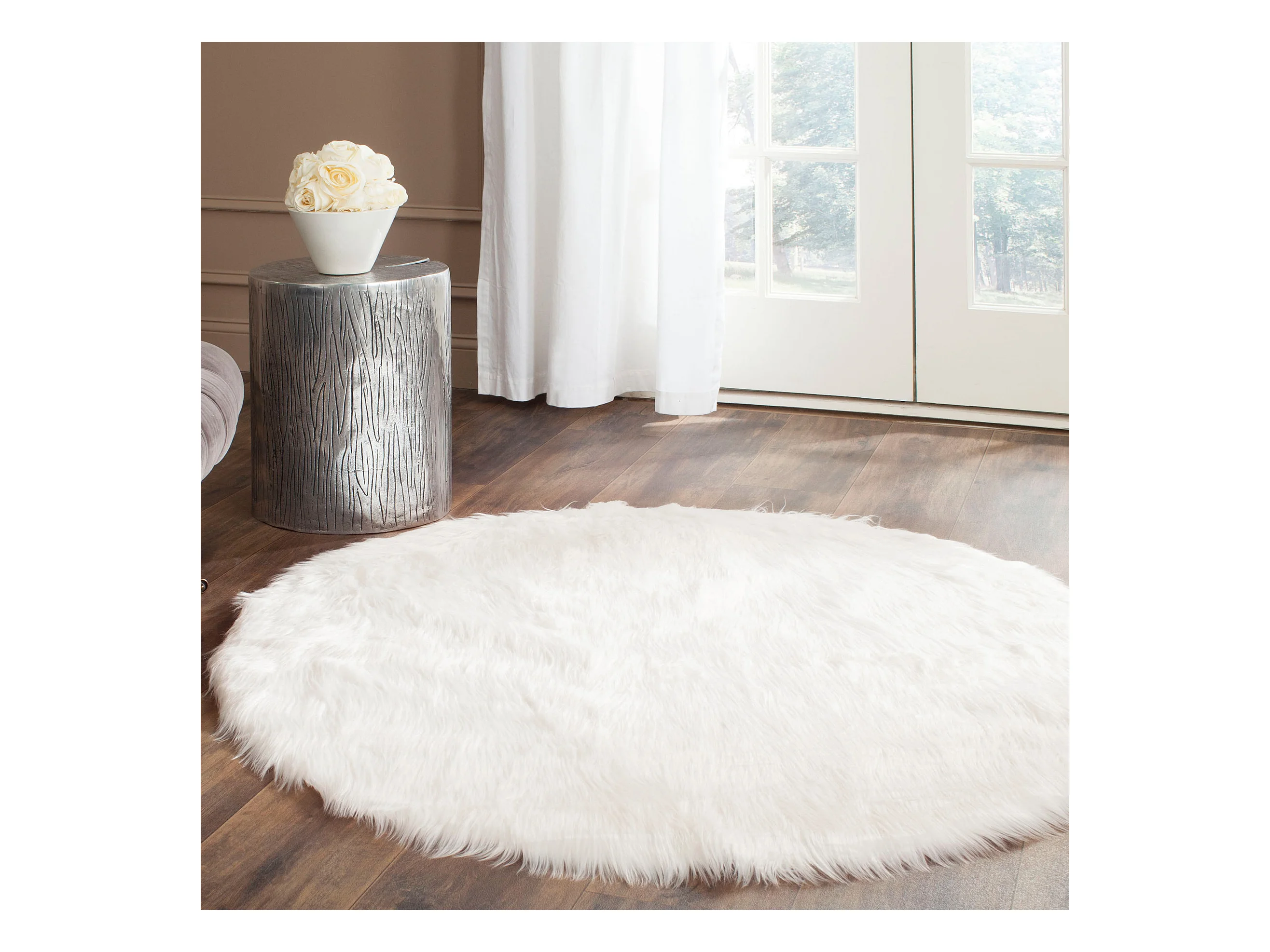 Tapis Rond Imitation Fourrure Ecru 115cm Blanc