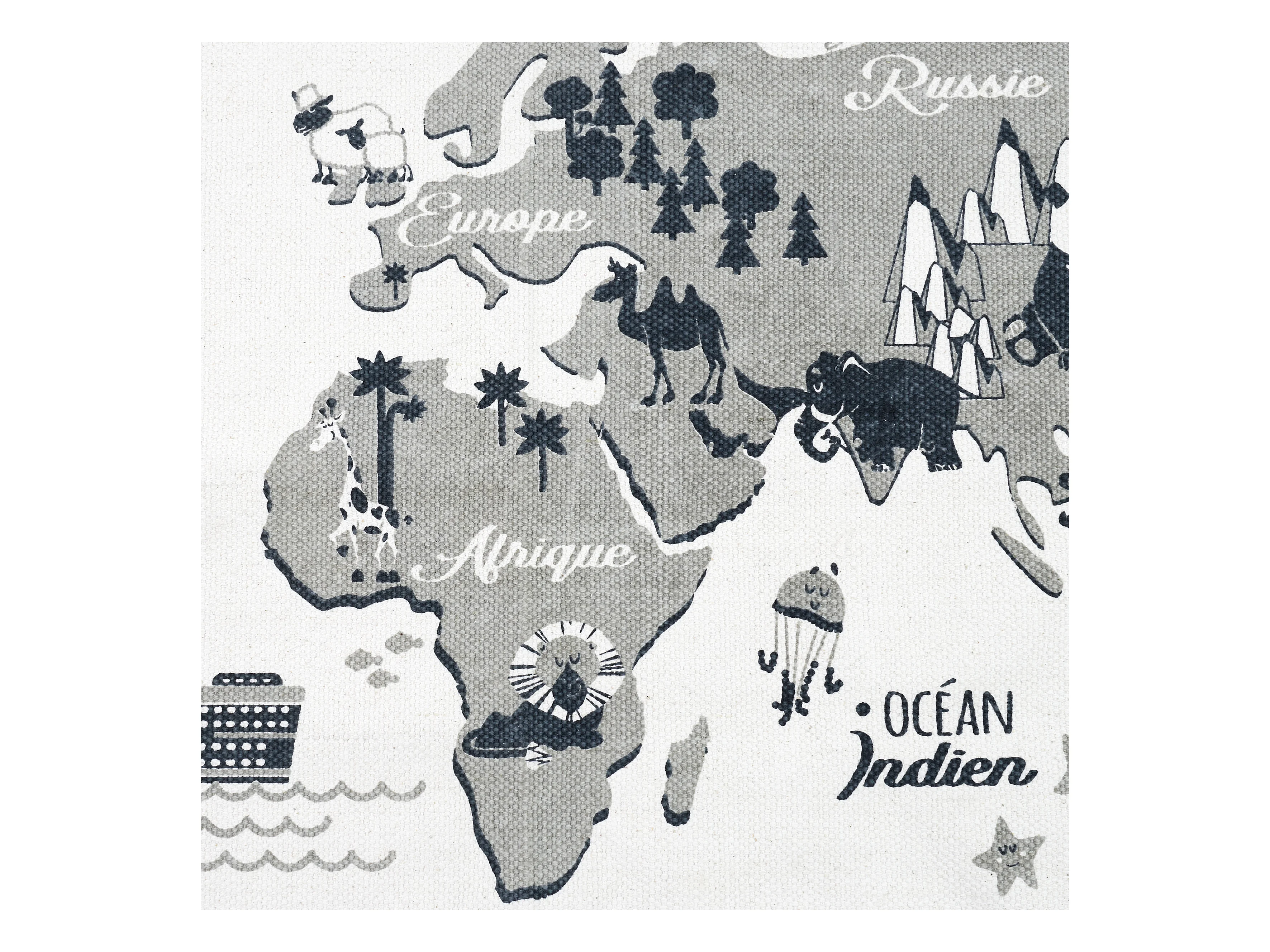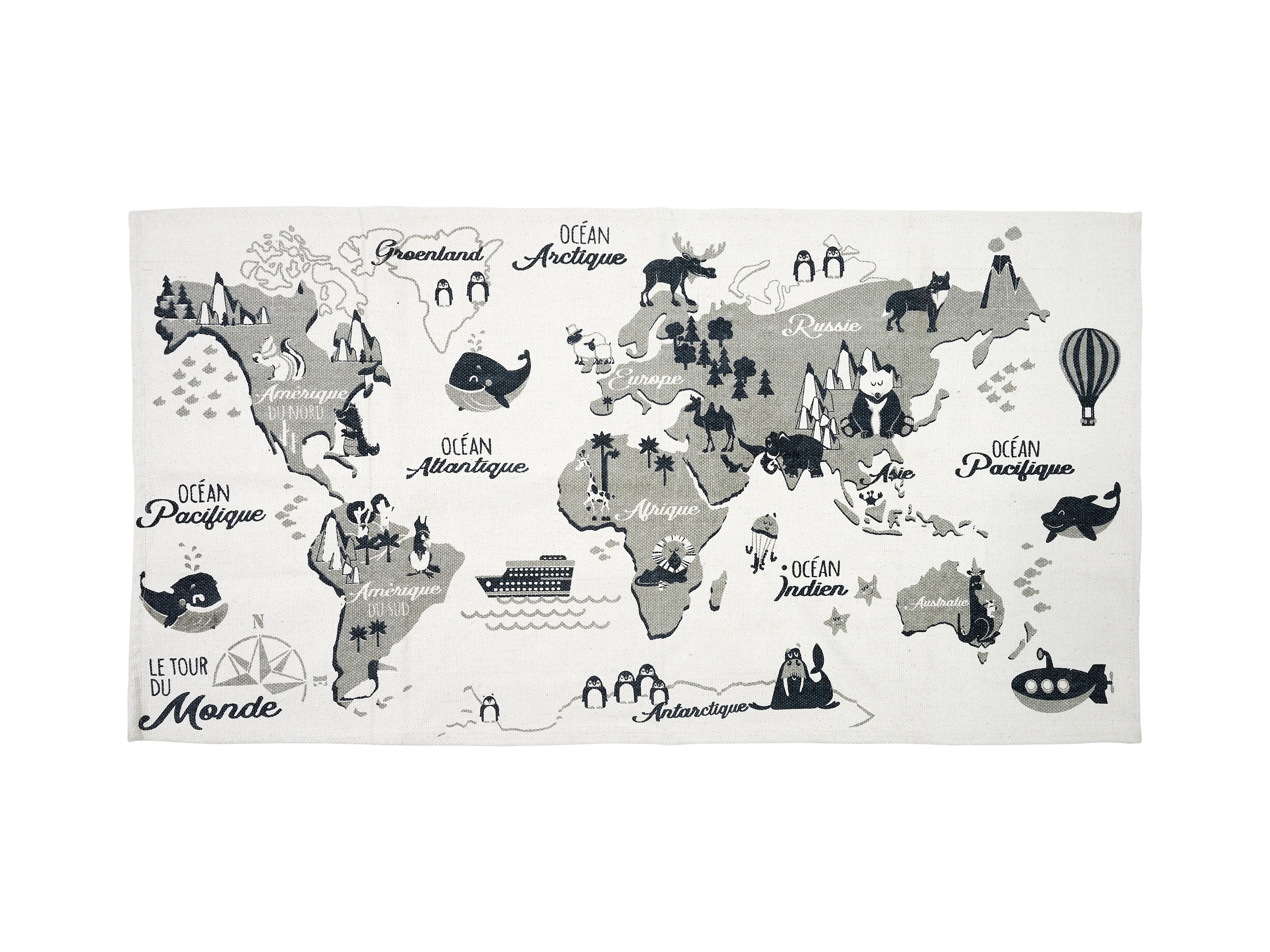 Tapis Mappemonde 140x70cm Blanc, Gris, Noir