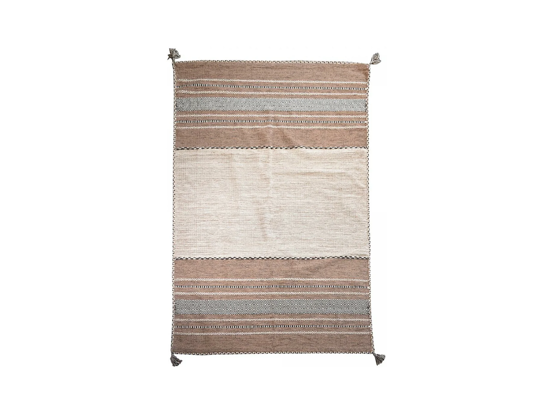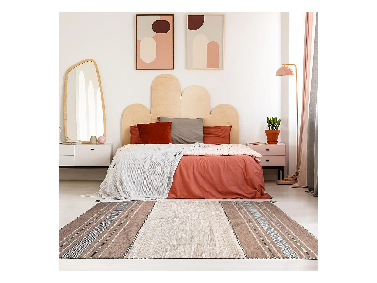 Tapis kilim 120x170 rectangle fait main en coton beige et marron
