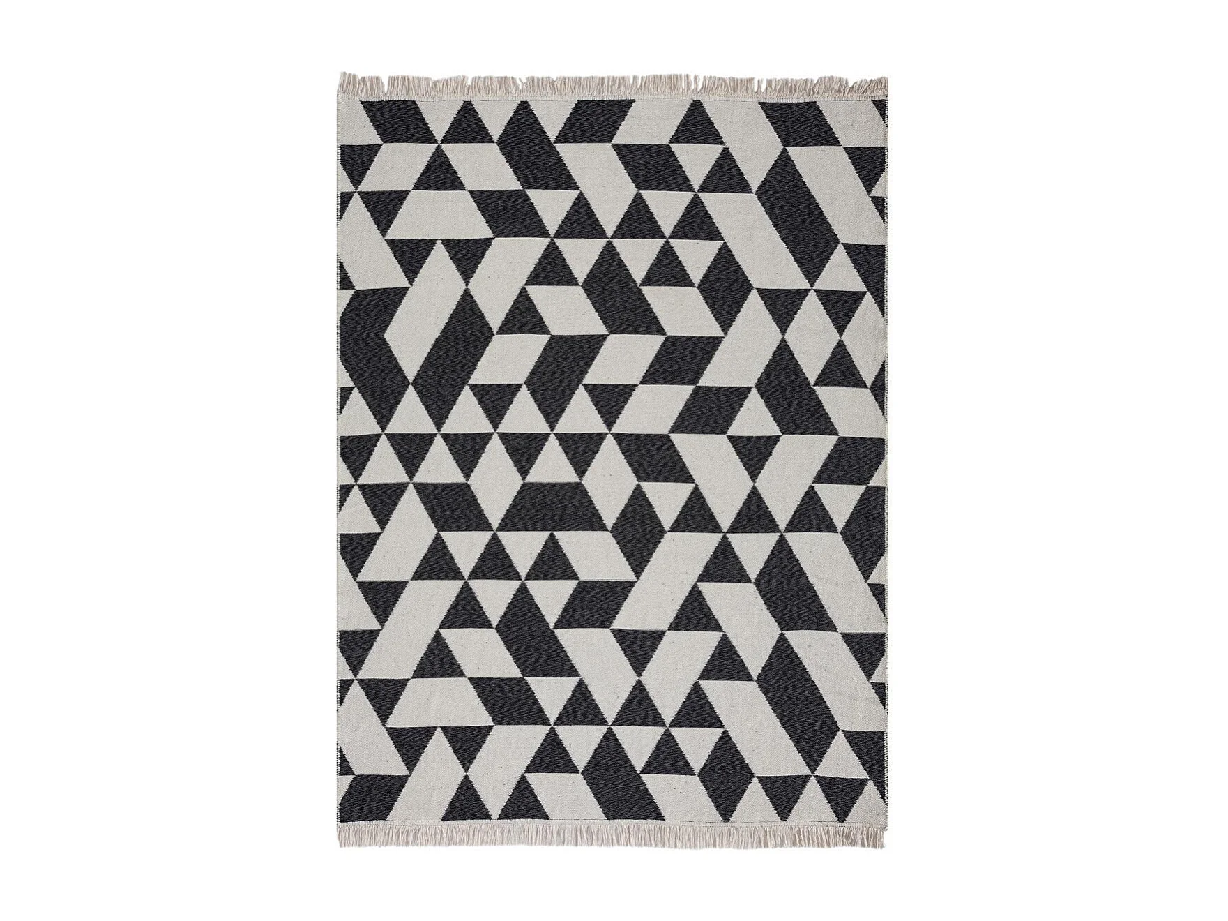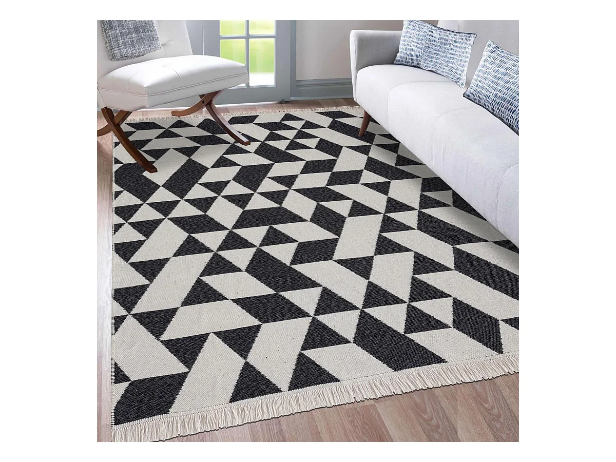 Tapis kilim reversible 160x230 en coton motif géométrique BI crème et noir