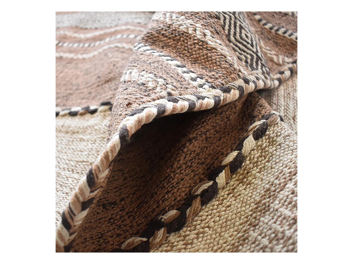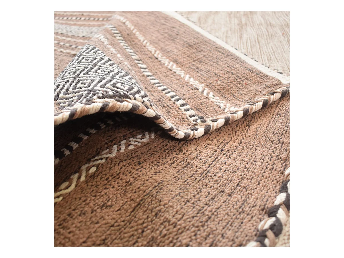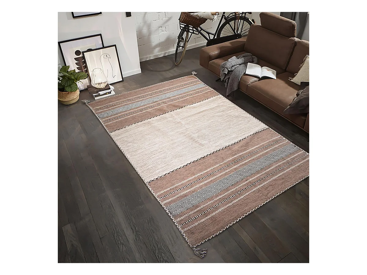 Tapis kilim 160x230 rectangle fait main en coton beige et marron
