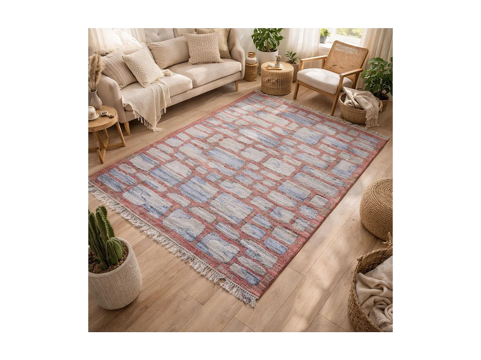 Tapis en jute 200x290 fait à la main bleu et gris JUTAP
