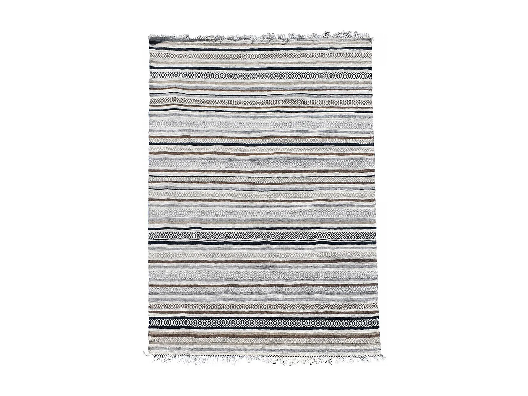 Tapis kilim 200x290 rectangle fait à la main en laine beige et marron