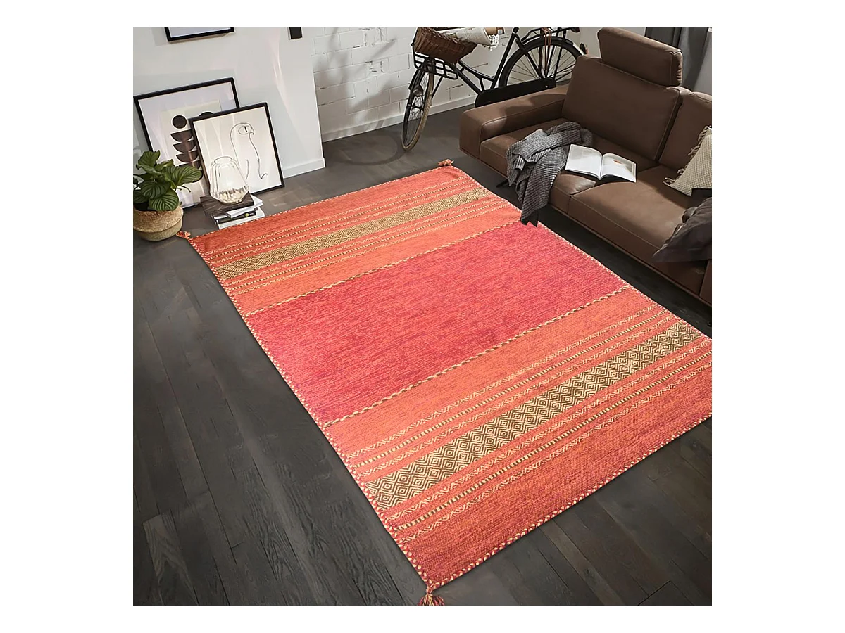 Tapis kilim 70x110 rectangle fait main en coton rouge motif ethnique