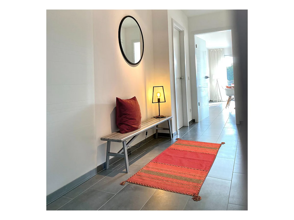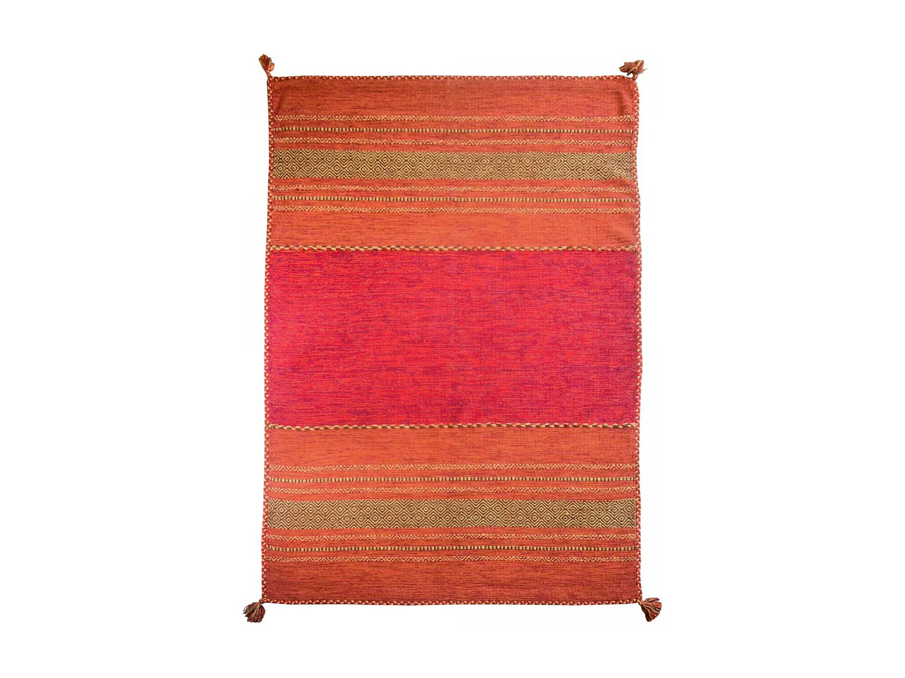 Tapis kilim 80x150 rectangle fait main en coton rouge et beige motif ethnique
