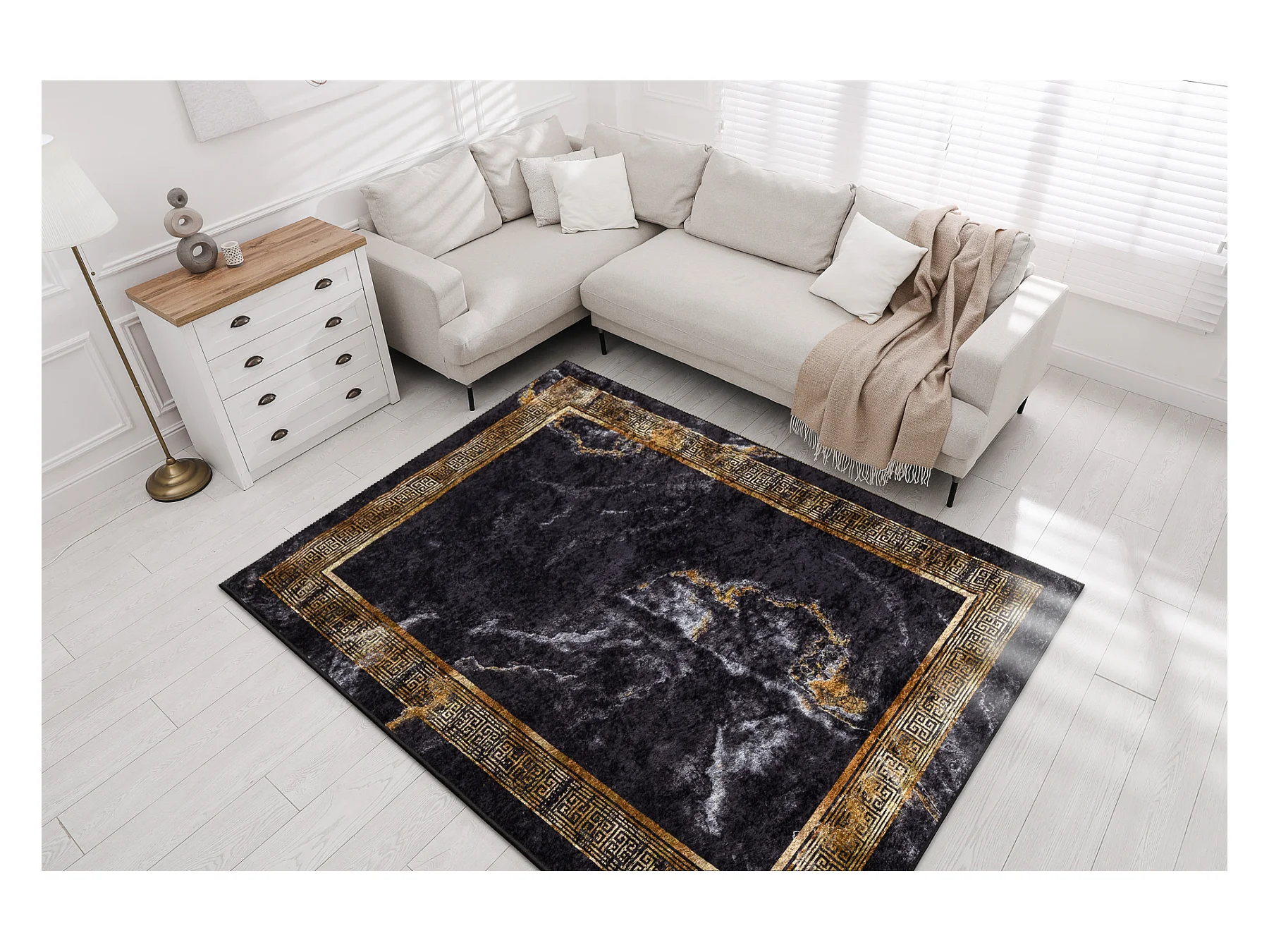 Tapis lavable MIRO 51278.809 Marbre, grec antidérapant - noir / or 80x150 cm