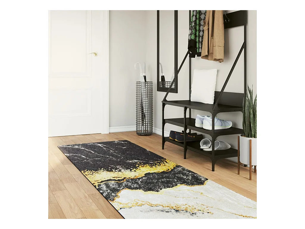 Tapis lavable noir et doré 80x300 cm antidérapant QBH61514