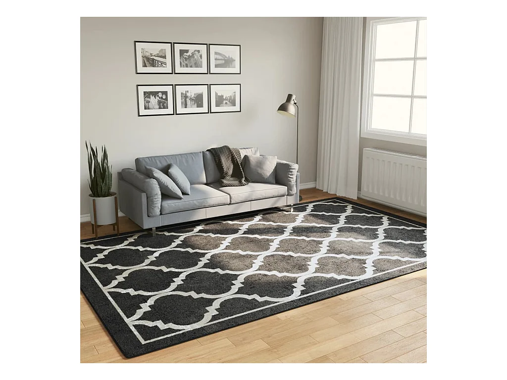 Tapis lavable noir et blanc 190x300 cm antidérapant QBH60863