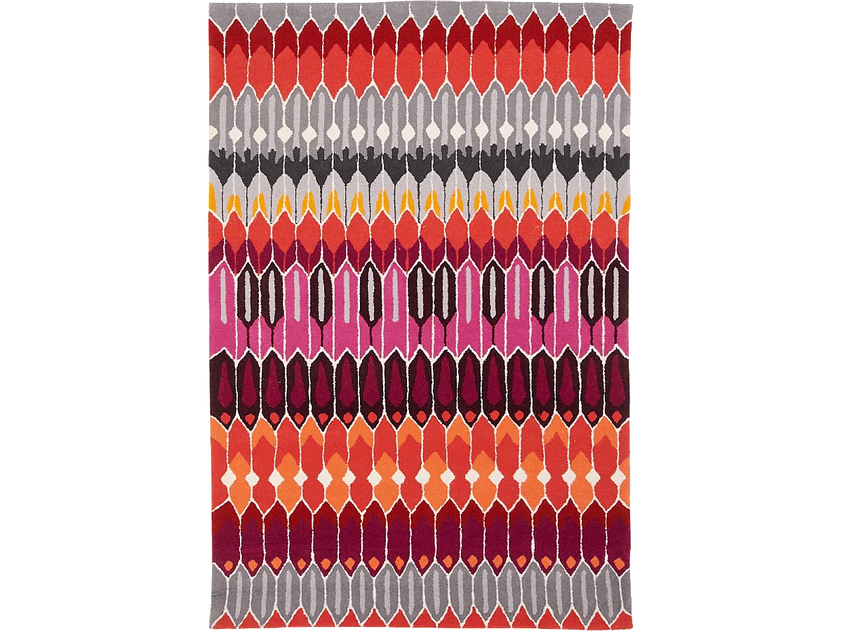 tapis chambre 120x180 fait main en laine gris et violet motif géométrique