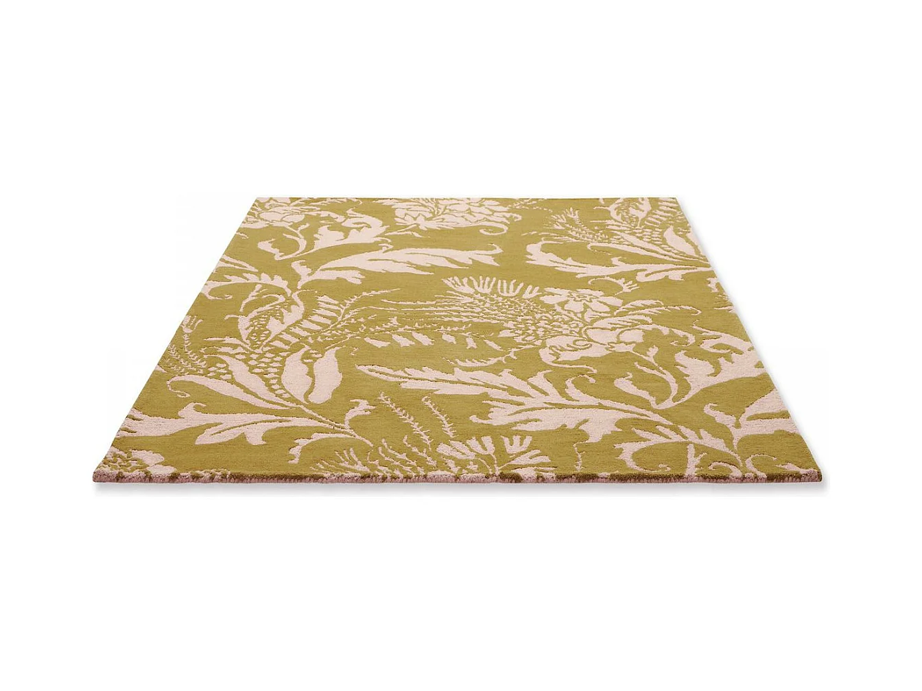 tapis chambre 170x240 fait à la main en laine jaune rectangle motif floral