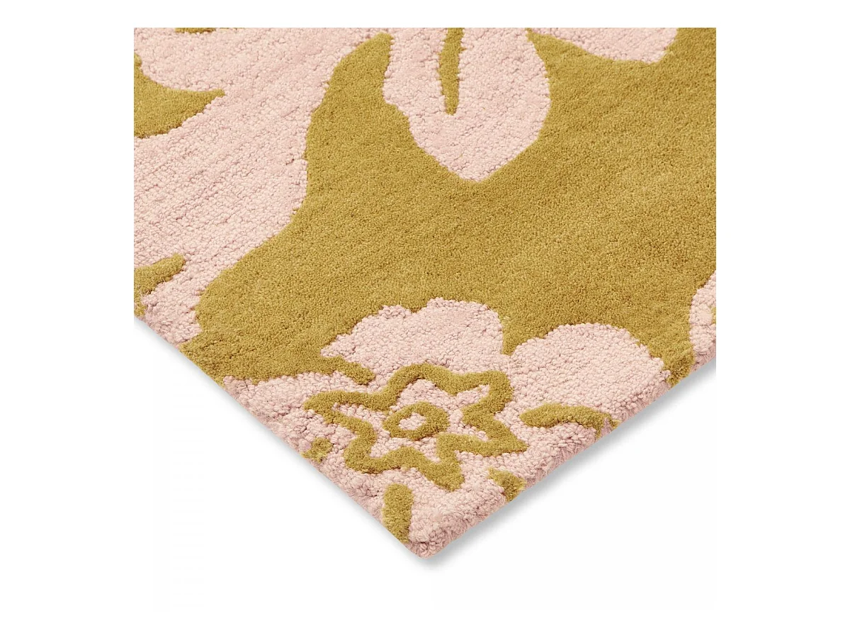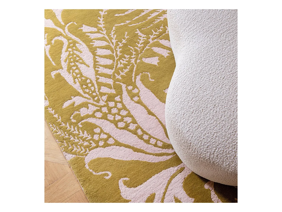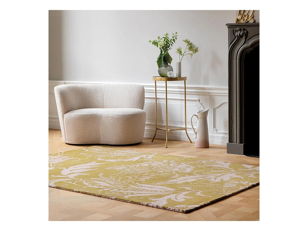 tapis grand salon 250x350 fait à la main en laine jaune rectangle motif floral