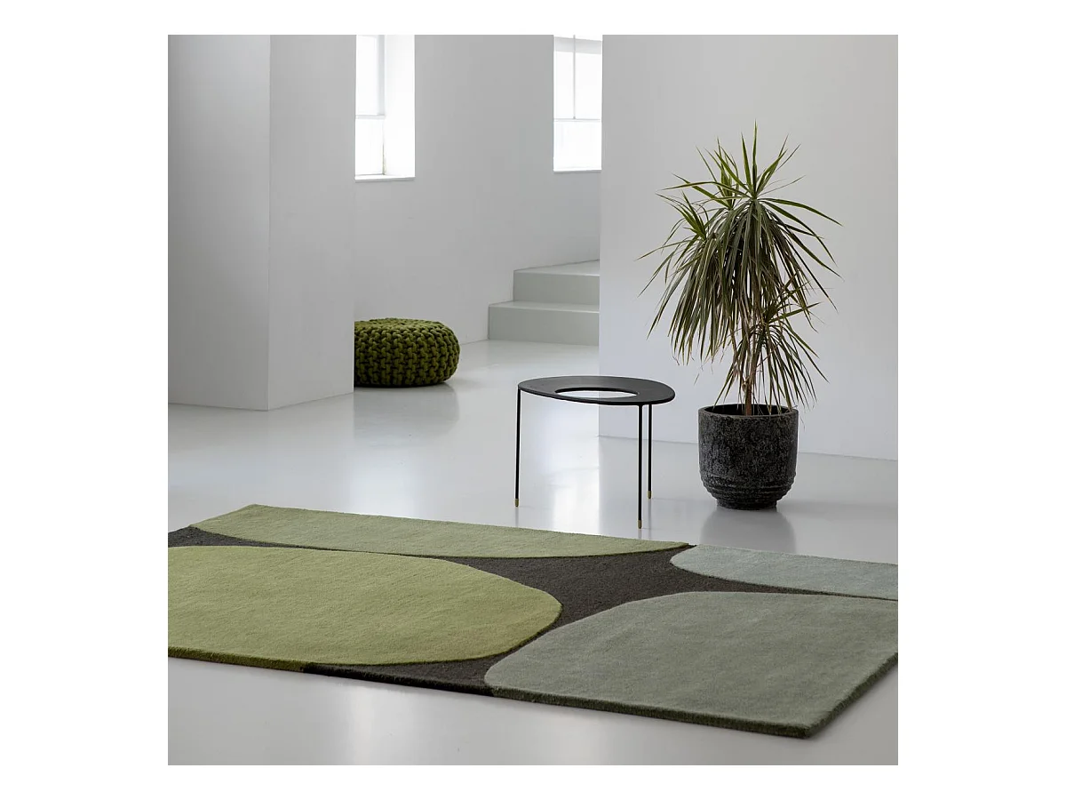 tapis chambre 160x230 fait main en laine vert rectangle motif rétro-vintage