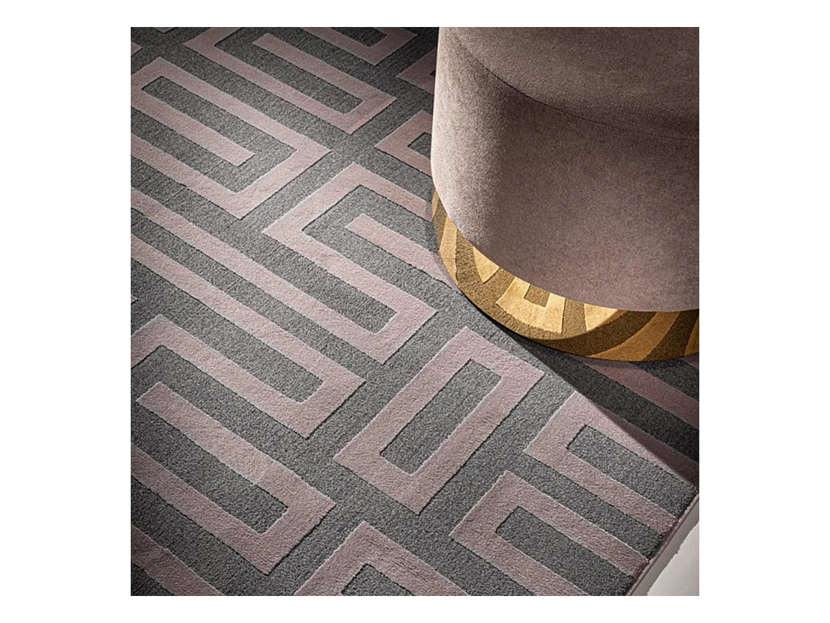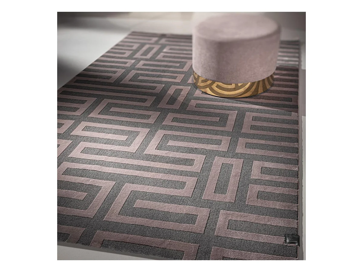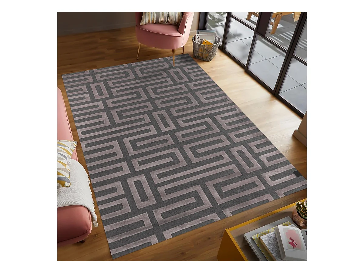 tapis salon 190x290 tissé rose et gris rectangle motif géométrique CONRAD