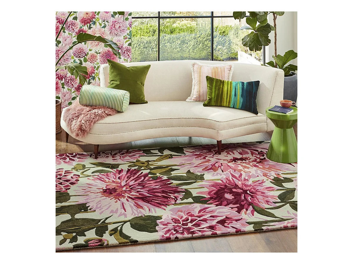 tapis salon 200x280 fait à la main en laine rose et vert rectangle motif floral